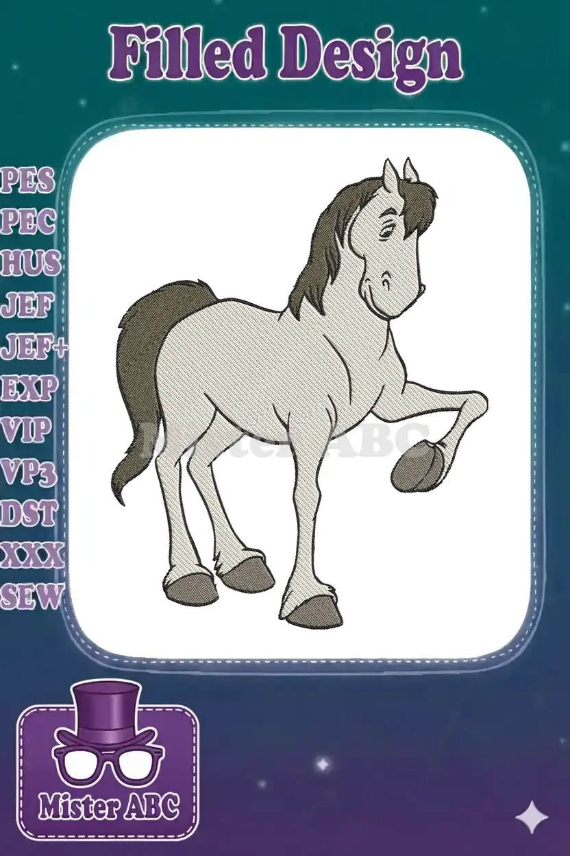 Playful Light Gray Cartoon Horse Prancing Embroidery Designs - Instant Download Playful Light Gray Cartoon Horse Prancing Embroidery Designs – Instant Download