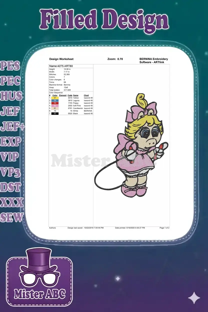 Playful Miss Piggy with Jump Rope Cartoon Embroidery Designs