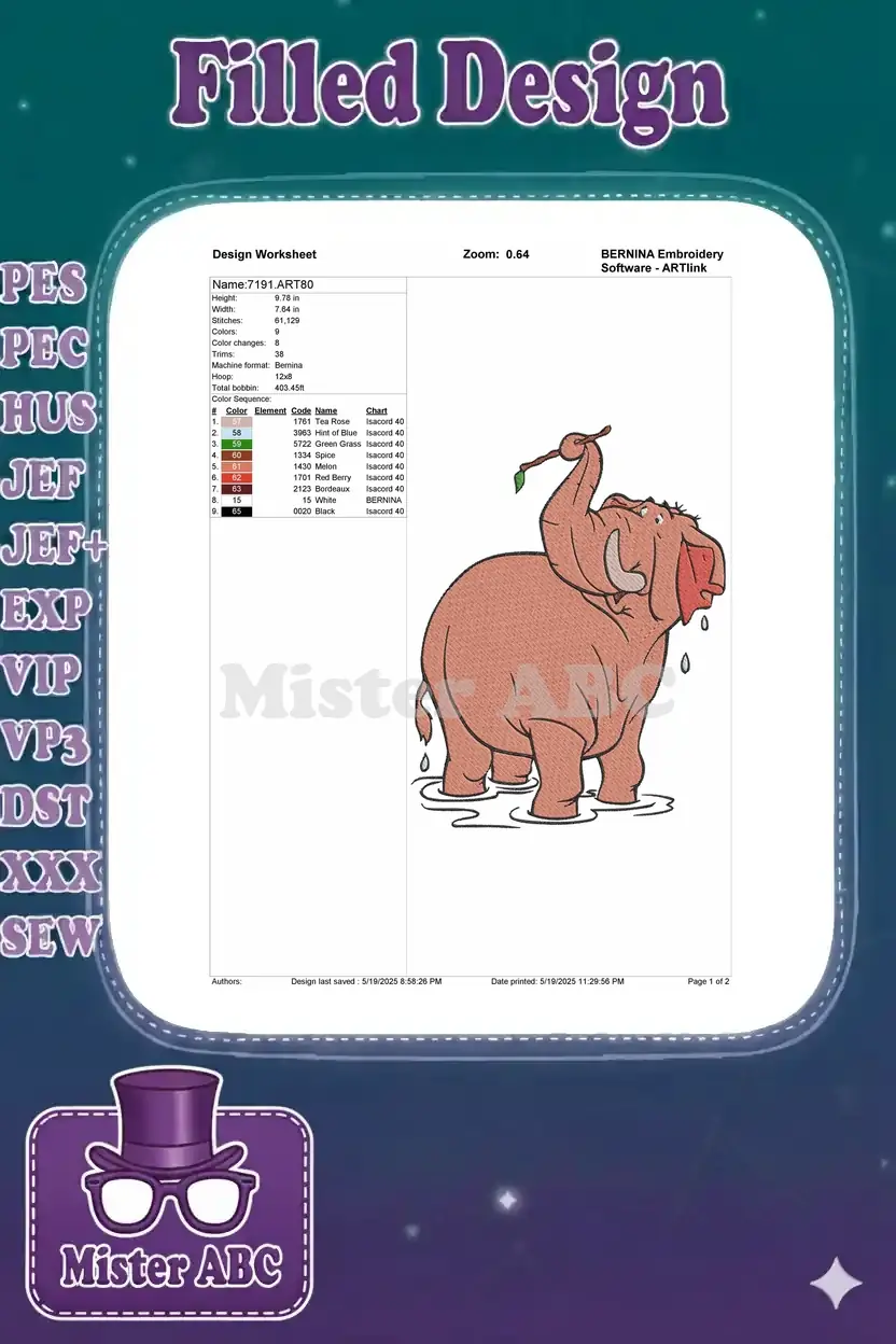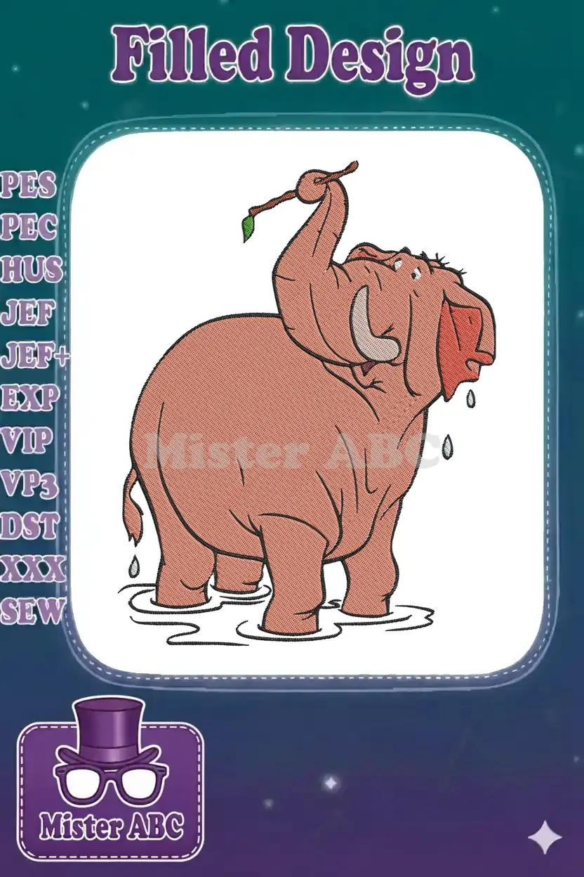 Playful Pink Elephant Splashing Water Fun Embroidery Designs