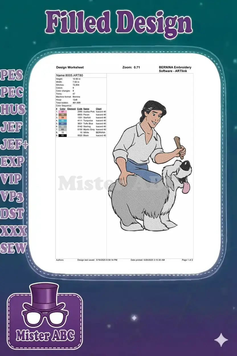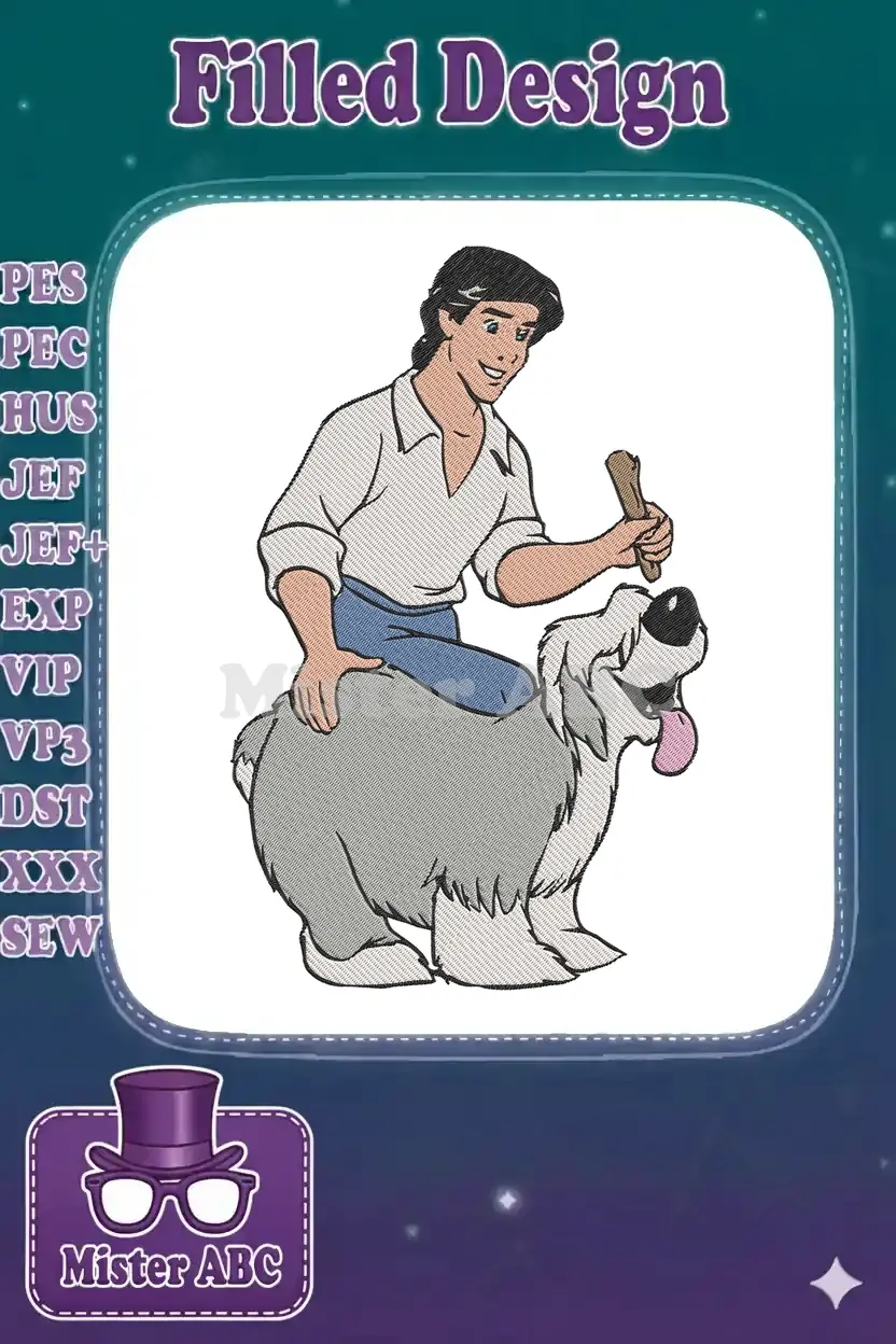 Playful Prince Eric Riding Max Old English Sheepdog Embroidery Designs