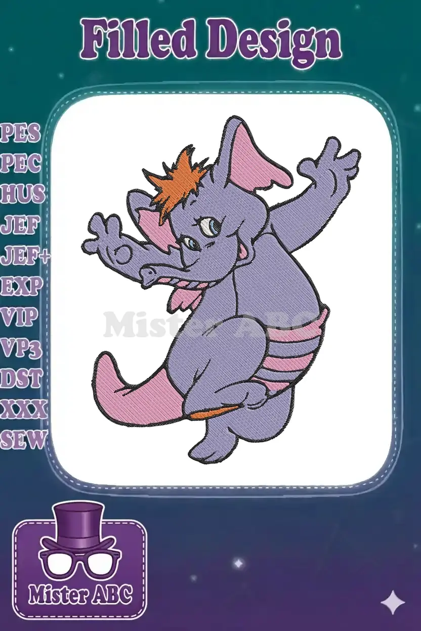Playful Purple Elephant with Orange Hair Cartoon Embroidery Designs