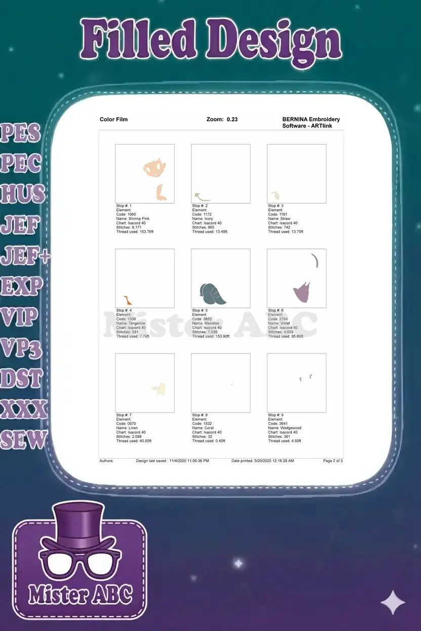 | Stitches | Colors | Thread Changes |