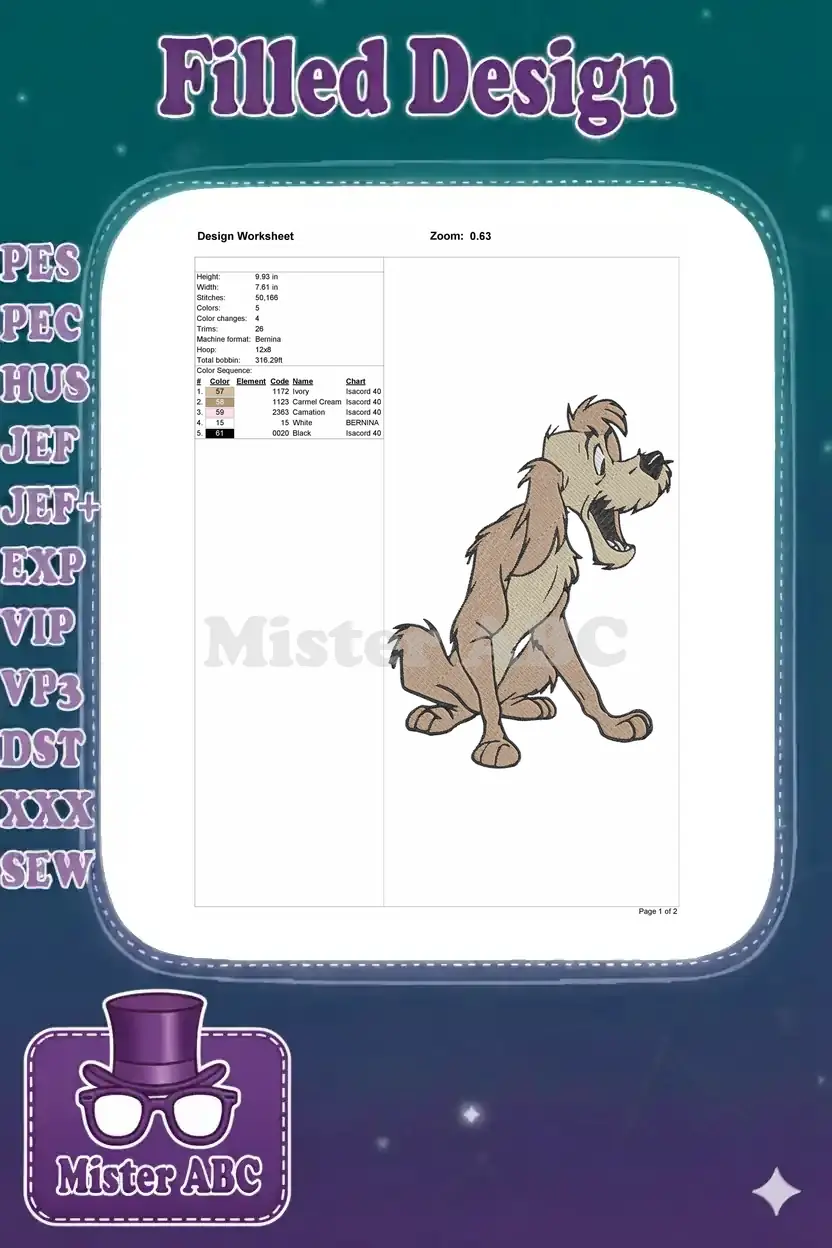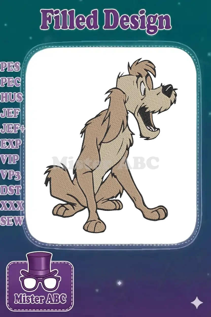 Playful Shaggy Brown Cartoon Dog Sitting Happy Embroidery Designs