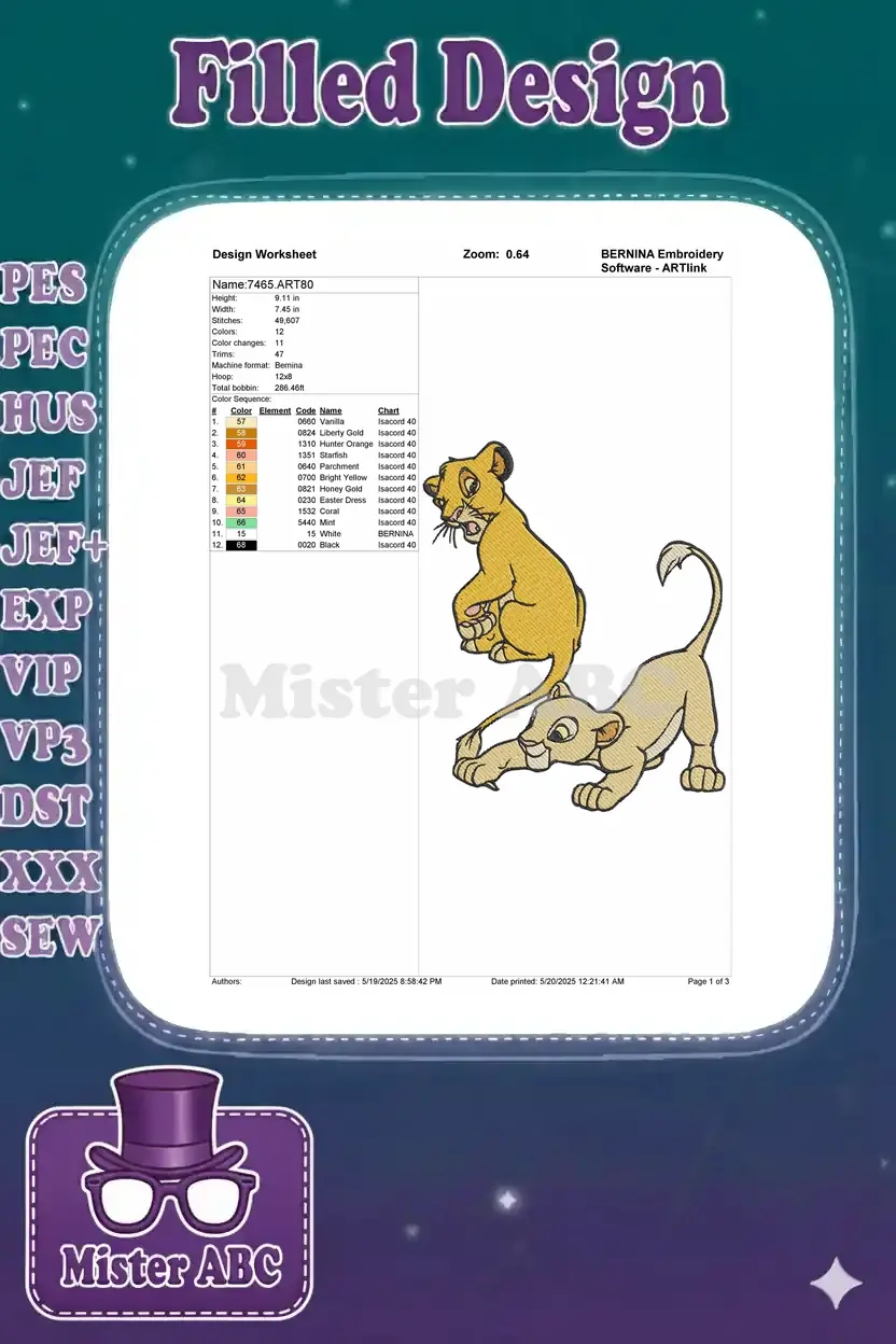 Playful Simba and Nala Lion King Cubs embroidery designs