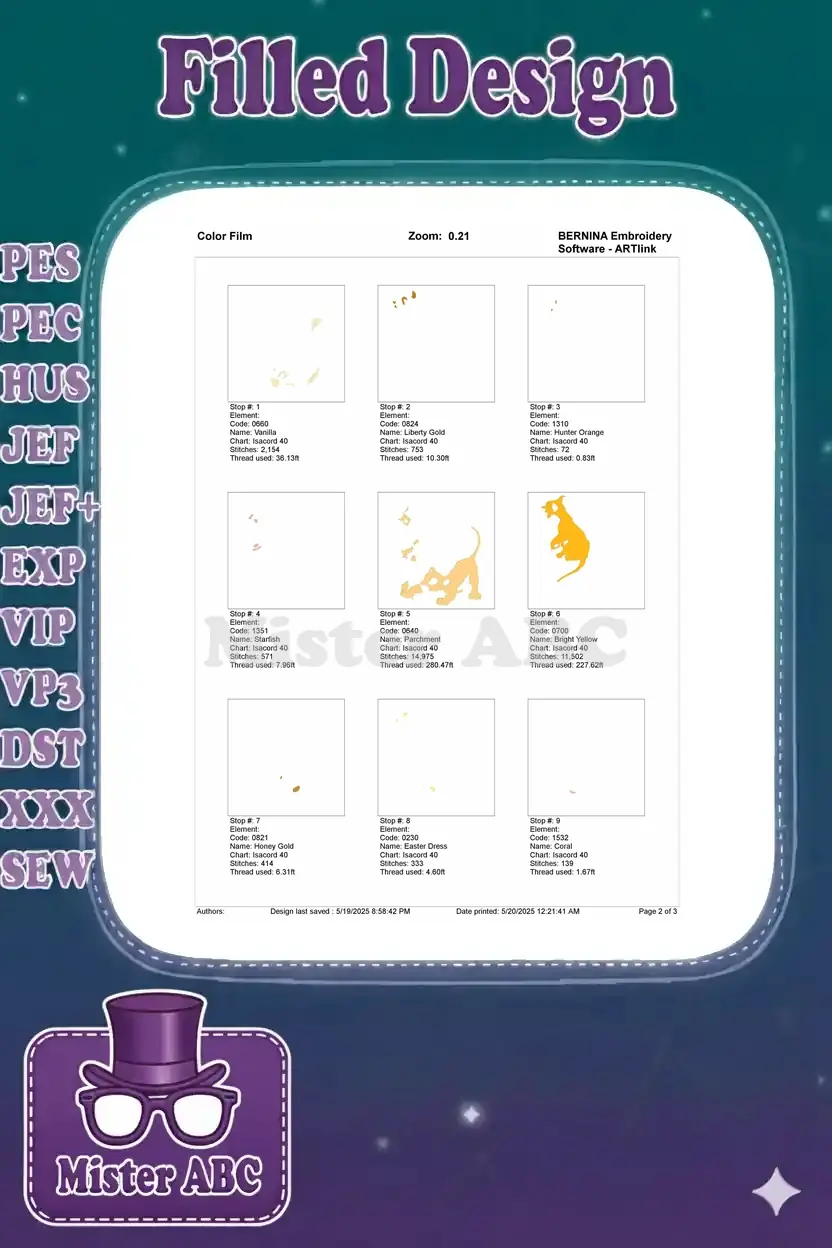 | Stitches | Colors | Thread Changes |