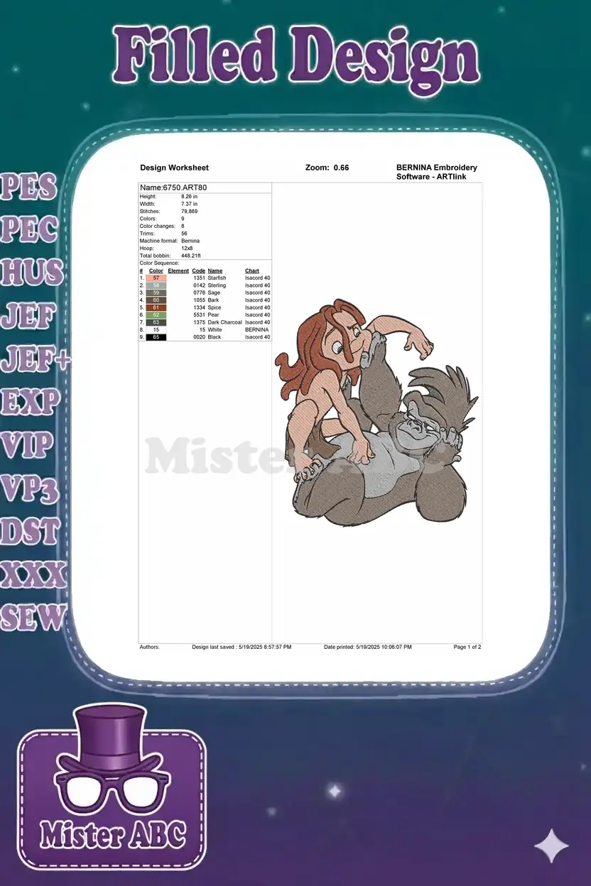 Playful Tarzan and Gorilla Friends Cartoon Embroidery Designs