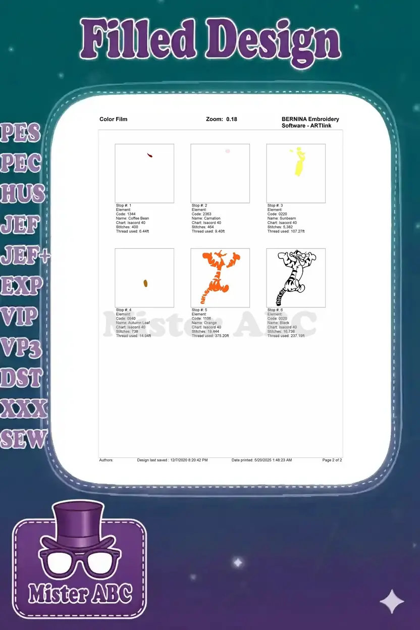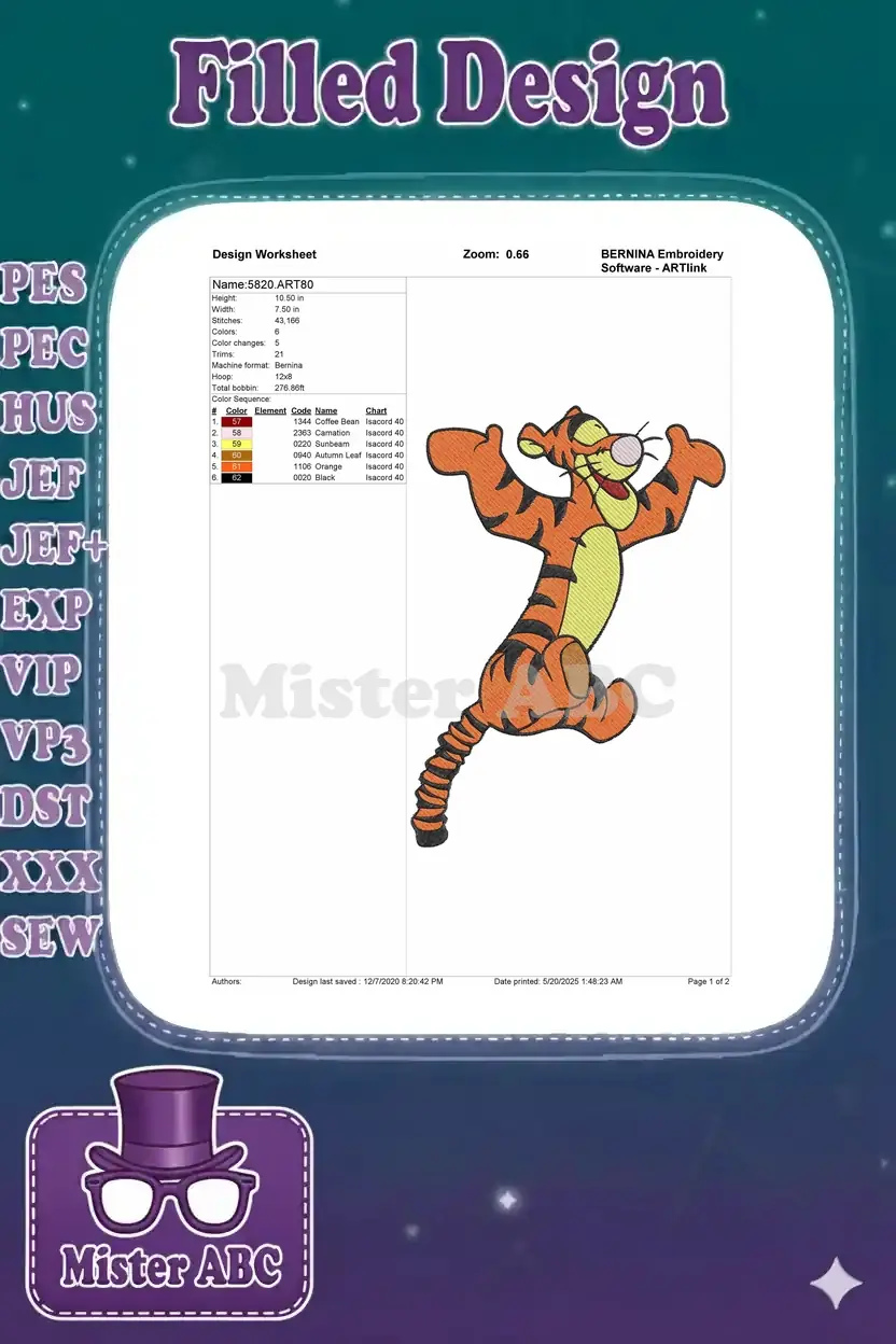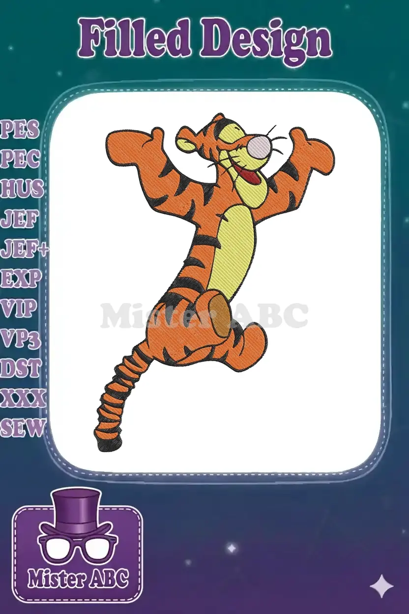 Playful Tigger Bouncing Happy Cartoon Character Embroidery Designs