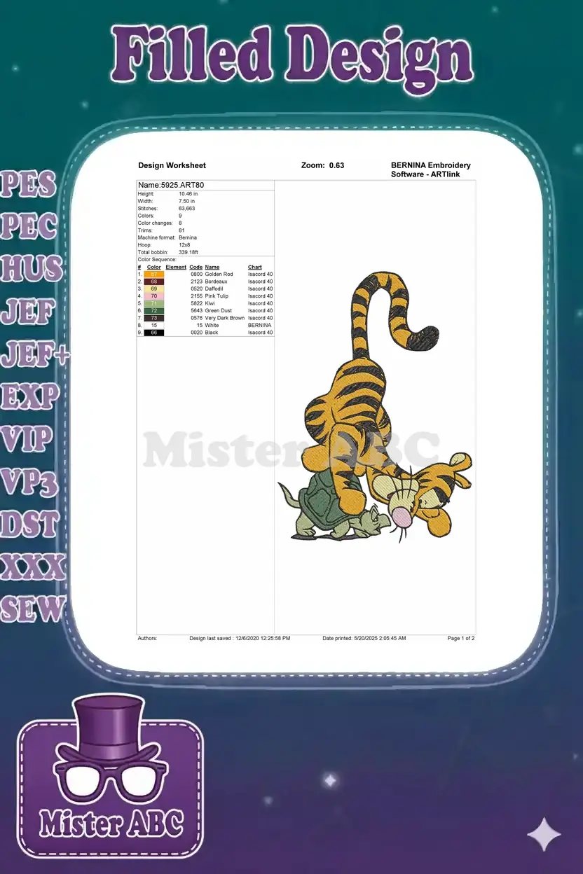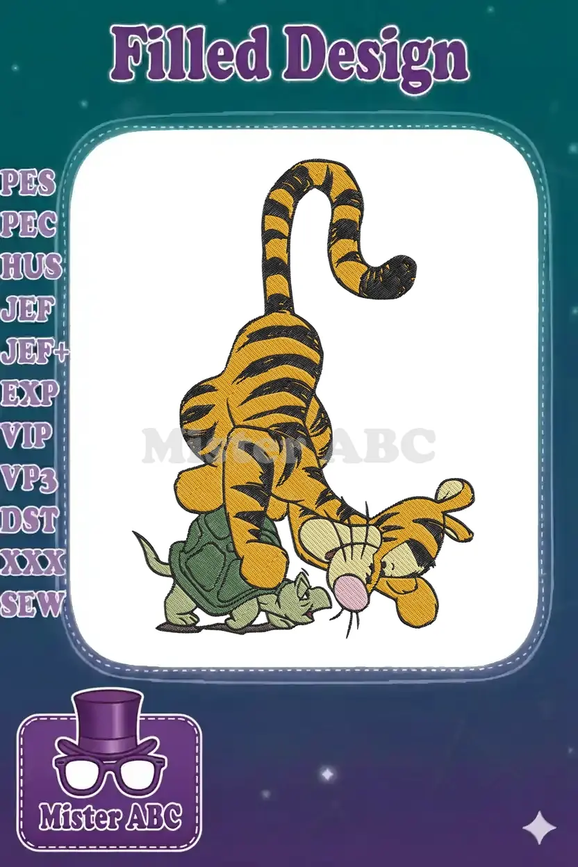 Playful Tigger Upside Down with Green Turtle Embroidery Designs