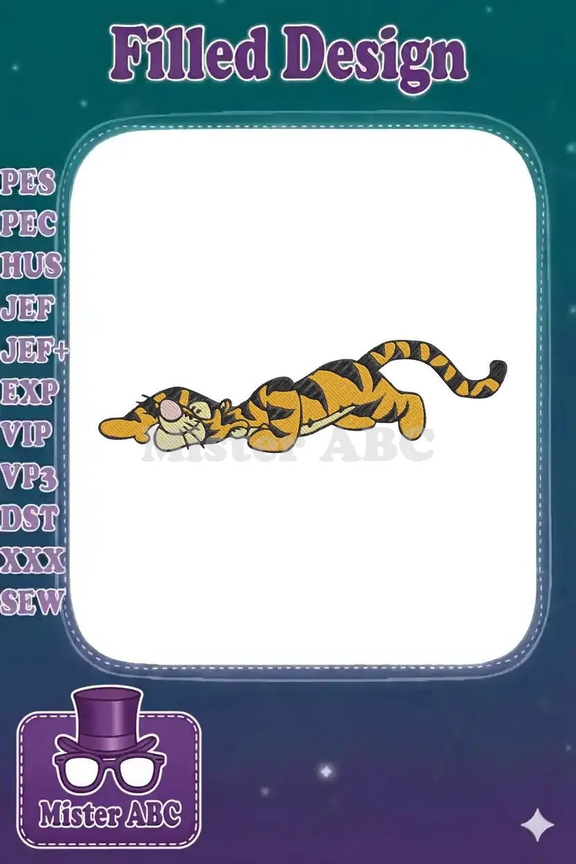 Capture the playful spirit of Tigger with this vibrant embroidery design. Perfect for adding a bouncy touch to any project.
