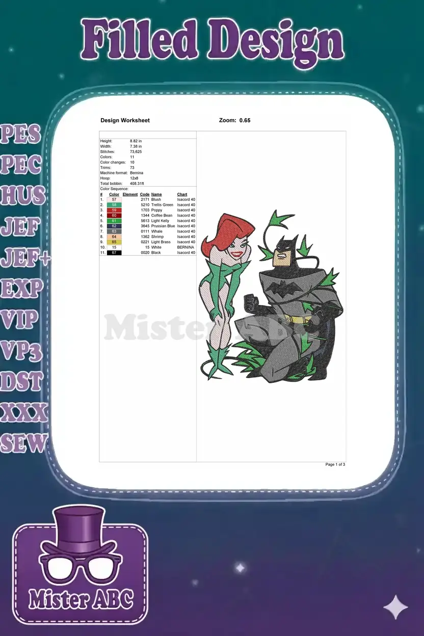 Poison Ivy and Batman Entangled in Vines Embroidery Designs