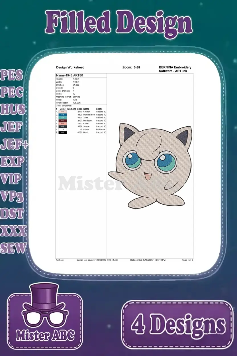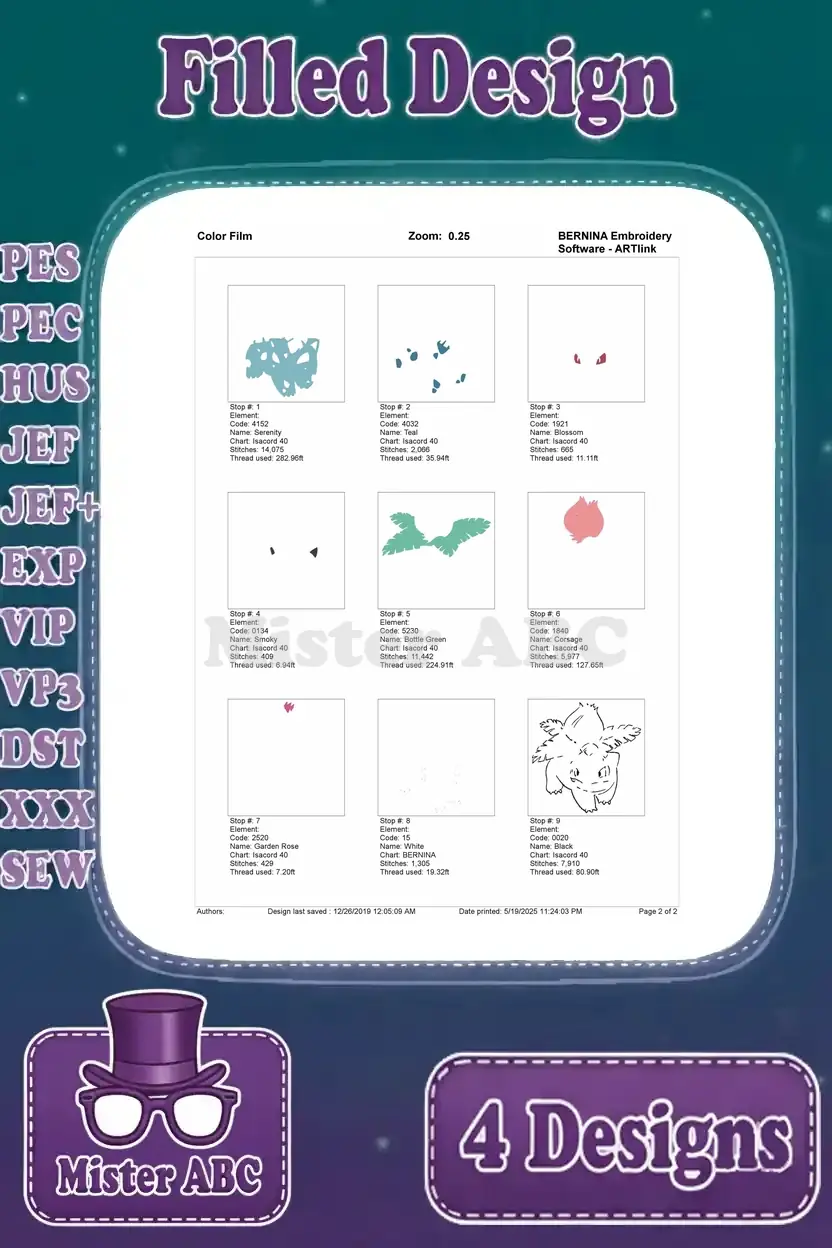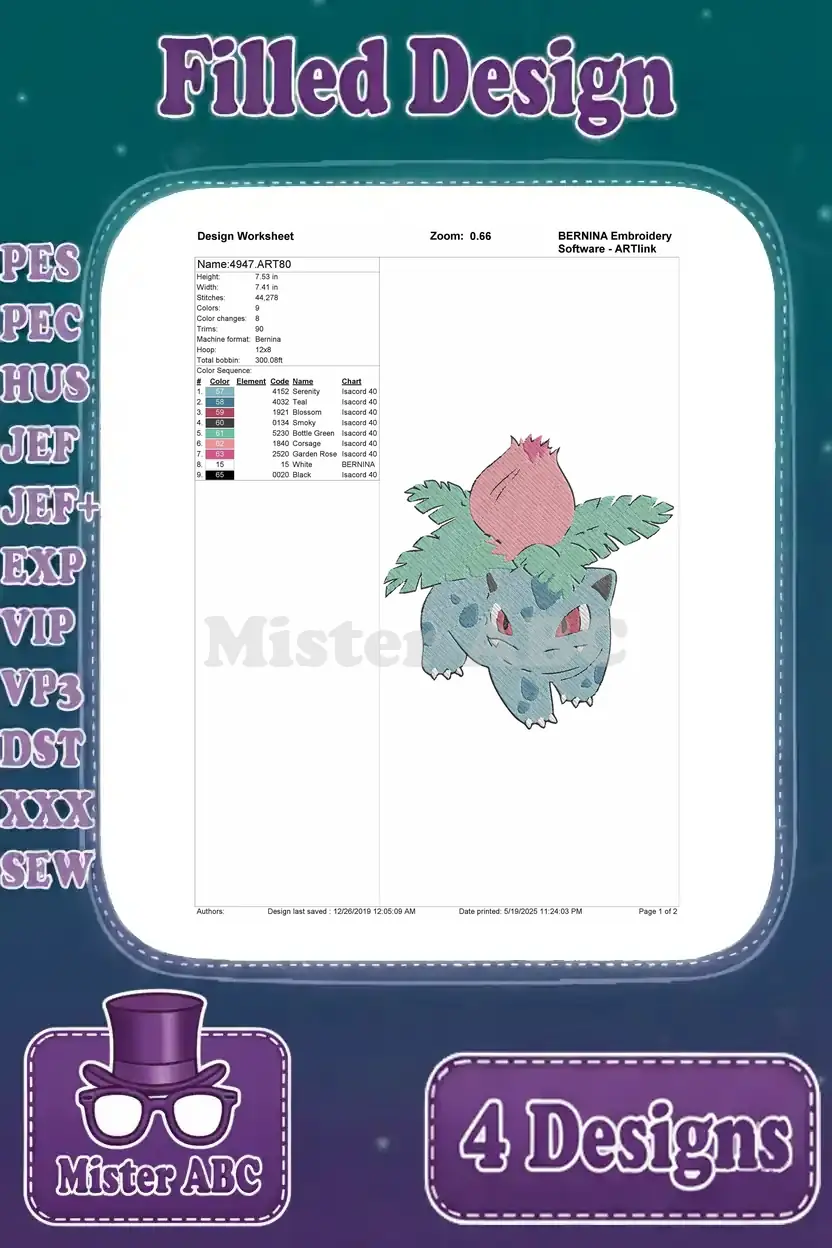Pokemon Characters Clefable Ivysaur And Jigglypuff Various Poses – Filled Embroidery Design
