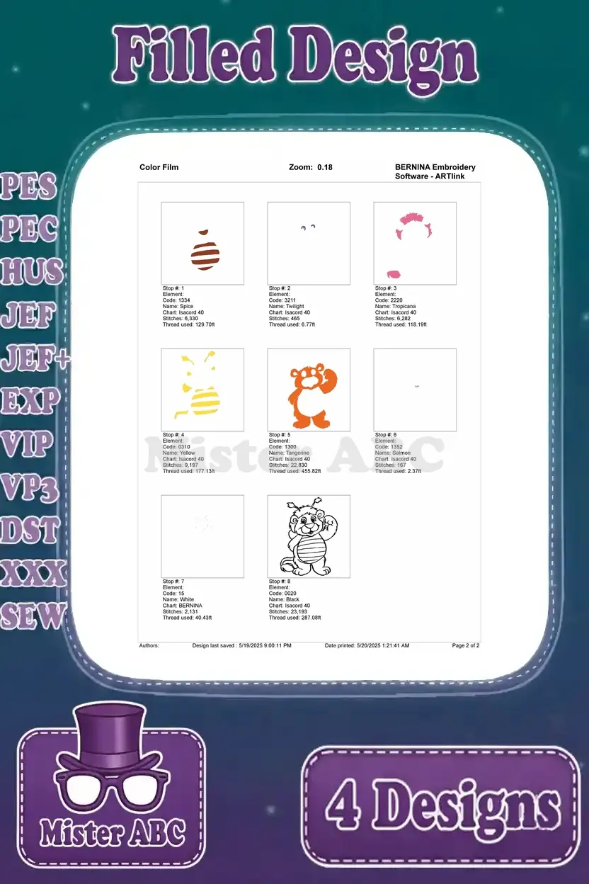 | Stitches | Colors | Thread Changes |