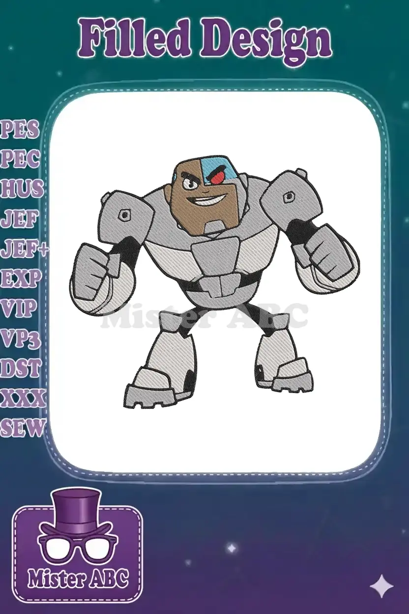 Powerful Cyborg Teen Titans Go Superhero Character Embroidery Designs