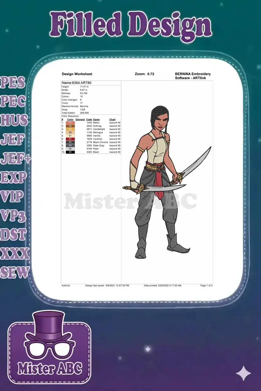 Powerful Female Warrior Dual Wielding Swords Embroidery Designs