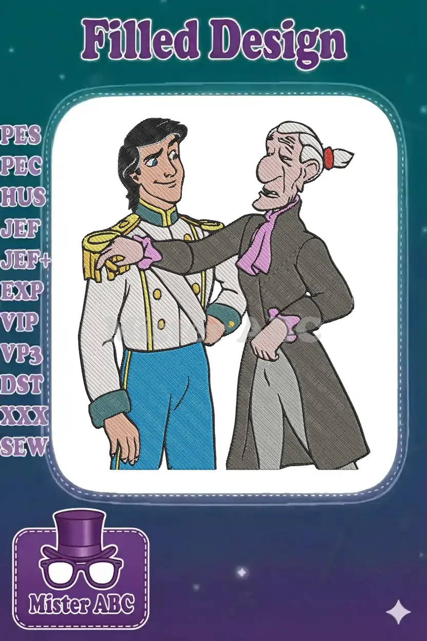 Prince Eric and Grimsby classic animated Disney movie embroidery designs