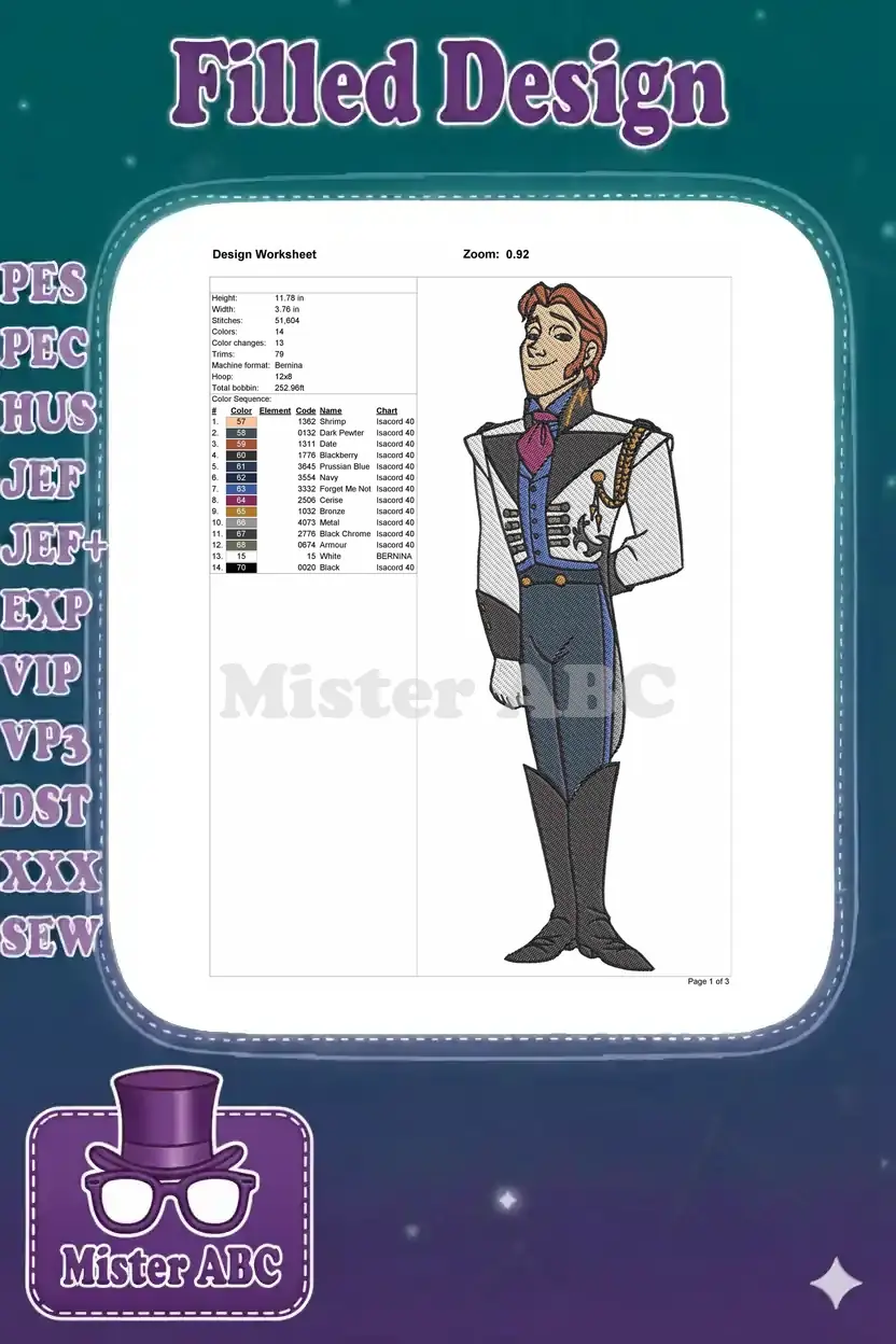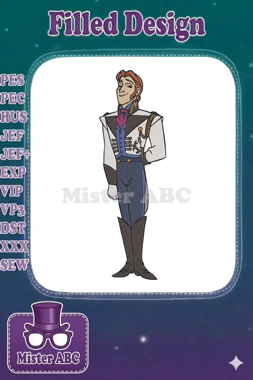 Prince Hans Frozen Character Embroidery Designs for Disney Fans