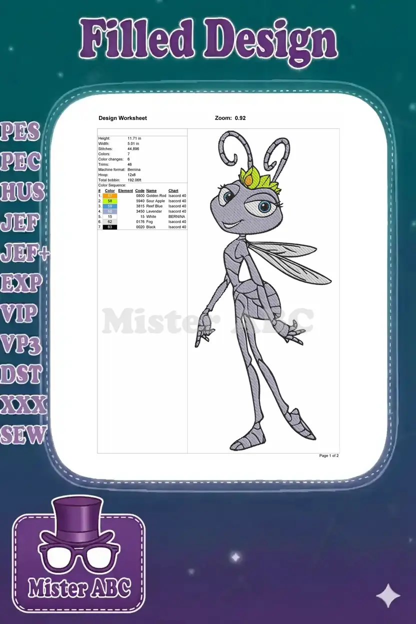 Princess Atta Ant Queen with Wings Animated Movie Embroidery Designs