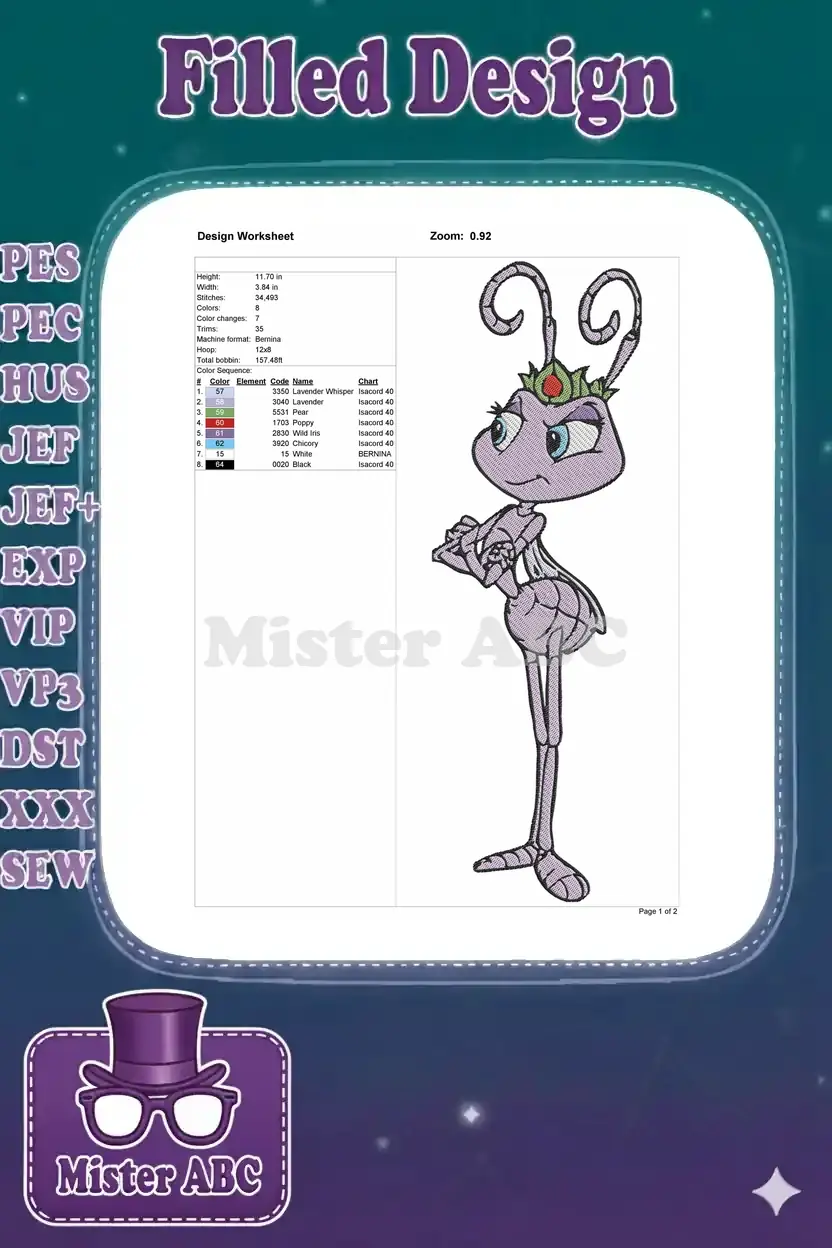 Princess Atta from A Bug’s Life cartoon embroidery designs