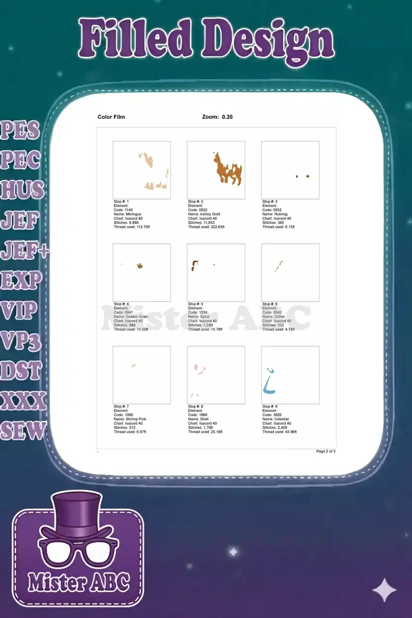 | Stitches | Colors | Thread Changes |