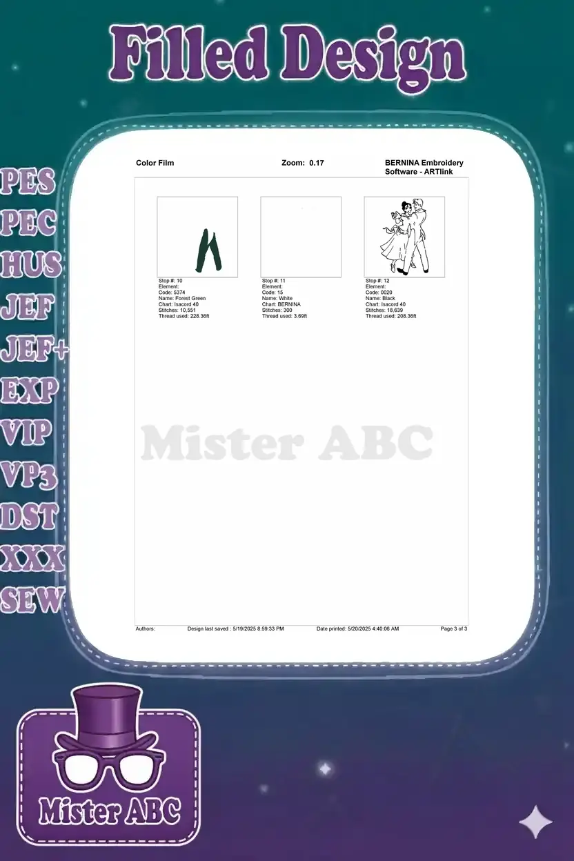 Princess Tiana Prince Naveen romantic dancing embroidery designs fairytale couple