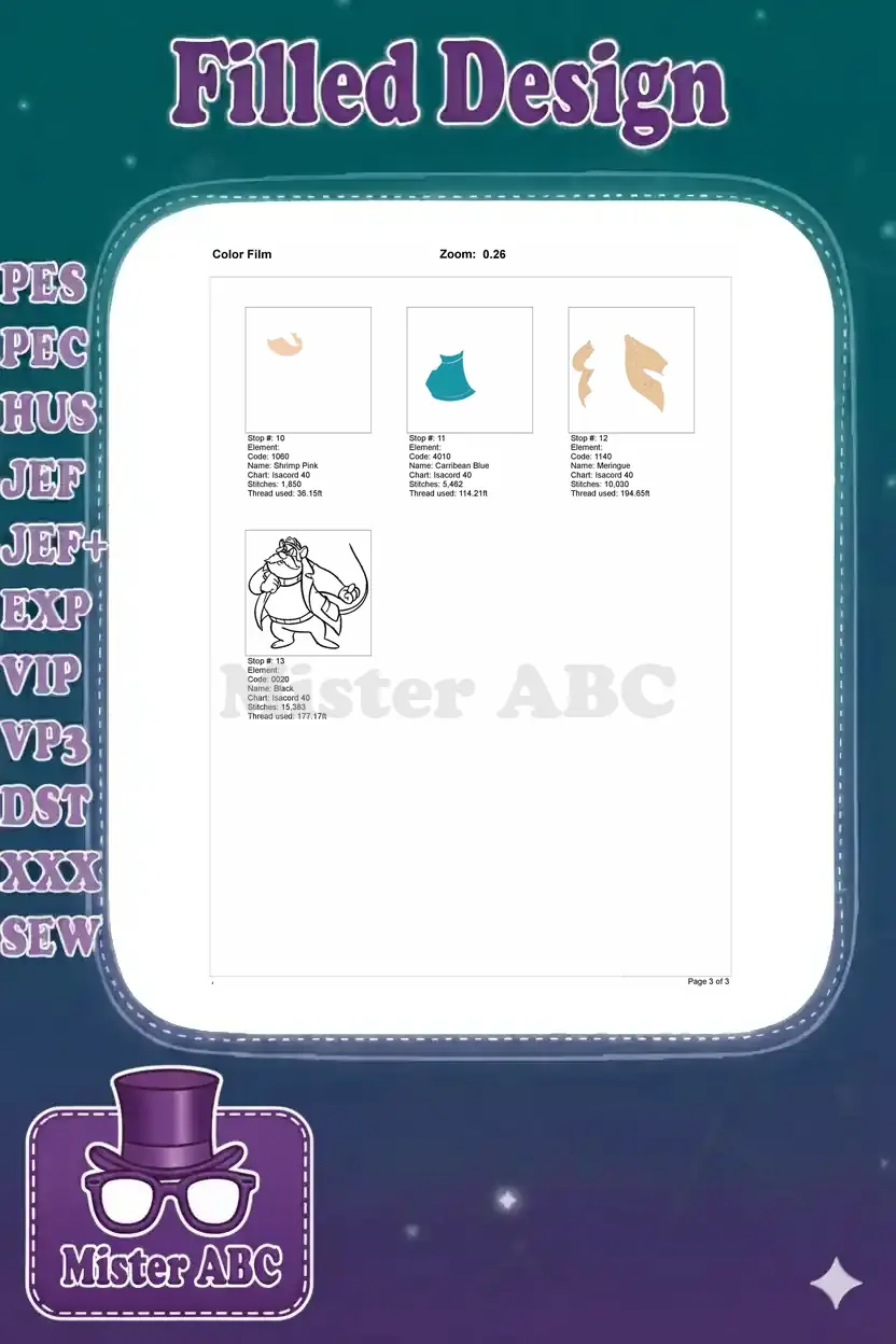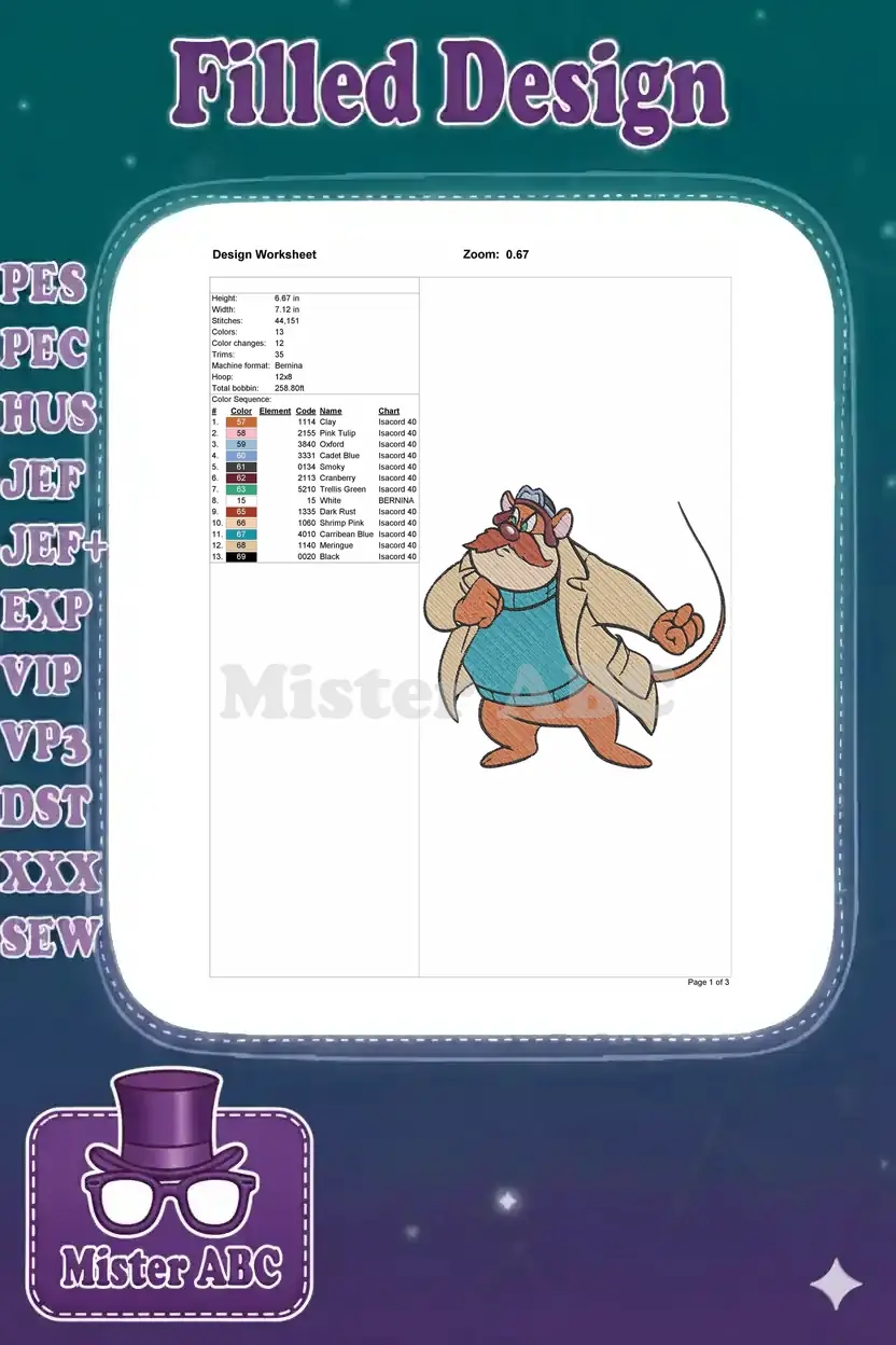 Professor Ratigan Mouse Detective Cartoon Character Embroidery Designs