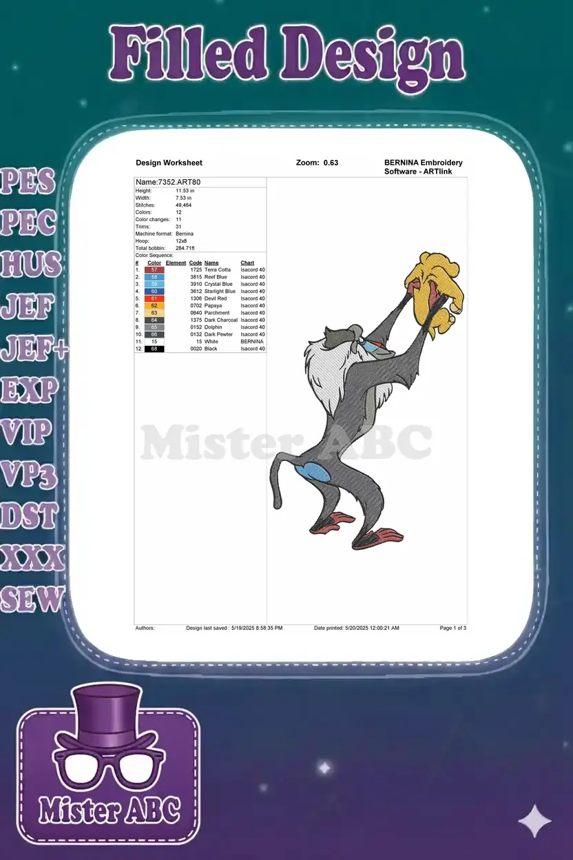 Rafiki presenting baby Simba from Lion King embroidery designs