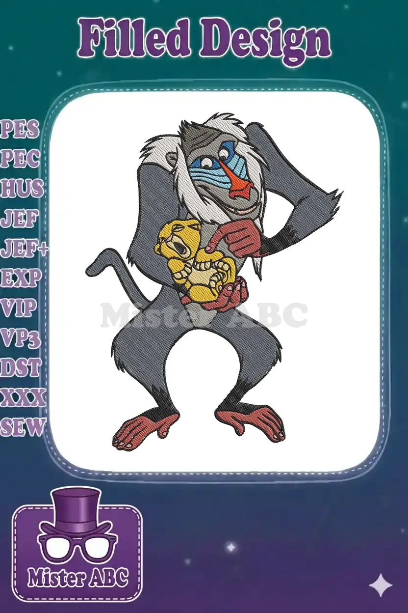 Rafiki presenting baby Simba from The Lion King embroidery designs