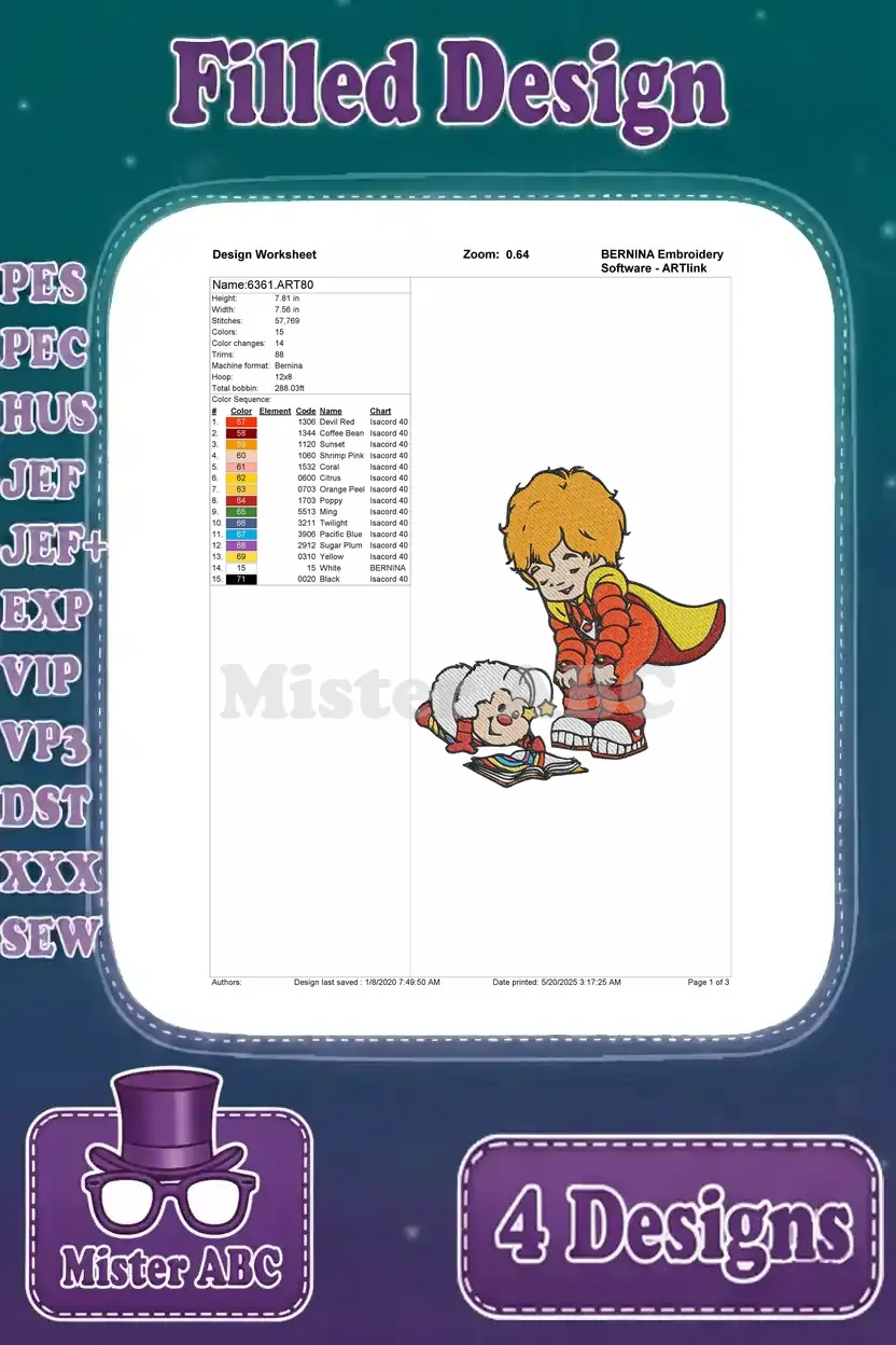 Rainbow Brite Sprites Santa Outfits Blonde Girl Accordion Christmas Cheer – Filled Embroidery Design