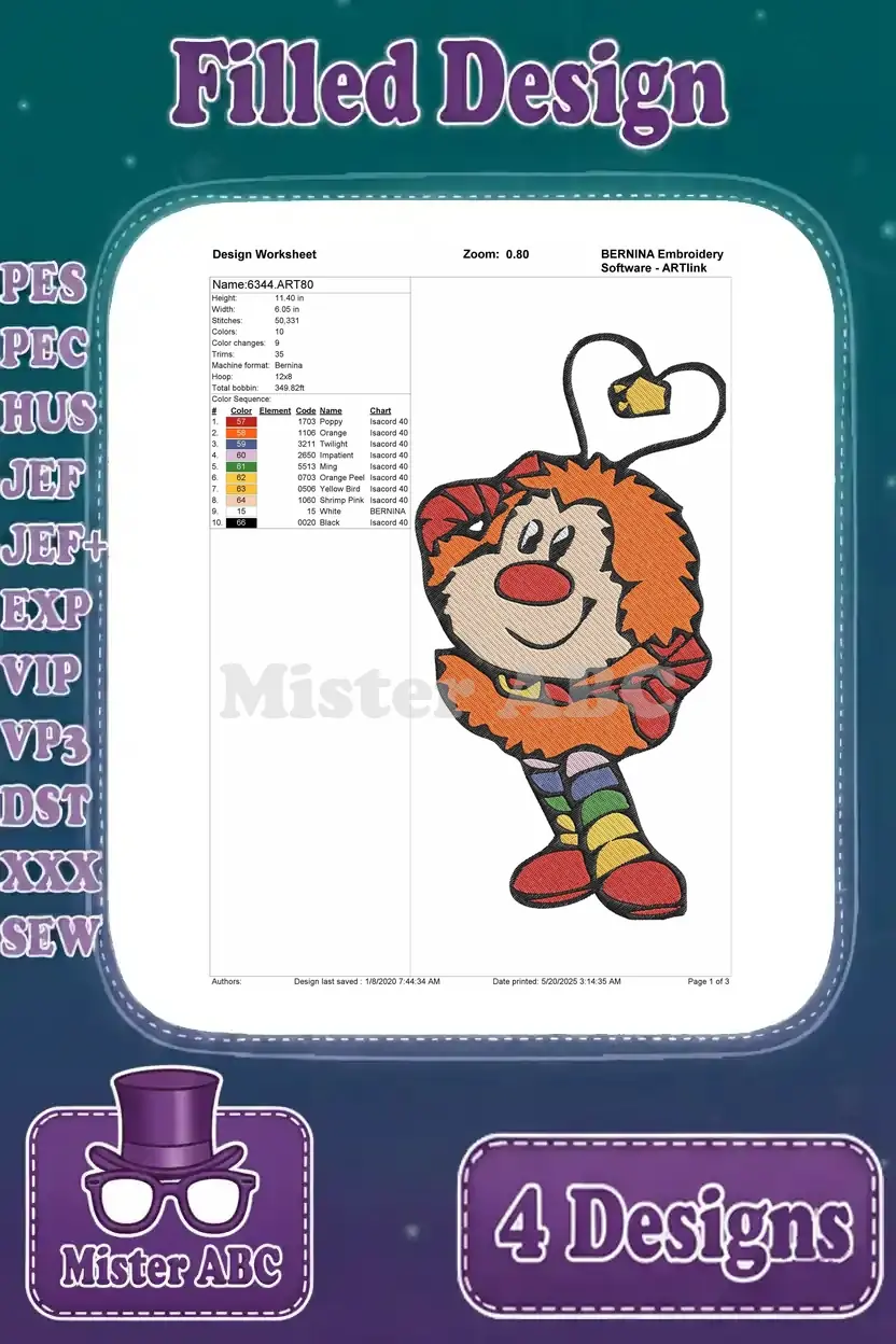 Rainbow Brite Sprites Twink Red Yellow Playing Golf Colorful Magical Creatures – Filled Embroidery Design