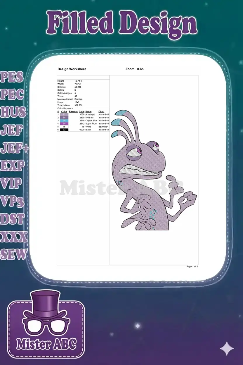 Randall Boggs purple monster scary face embroidery designs