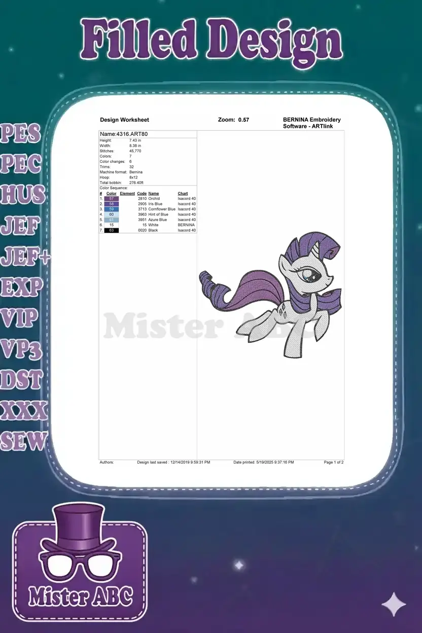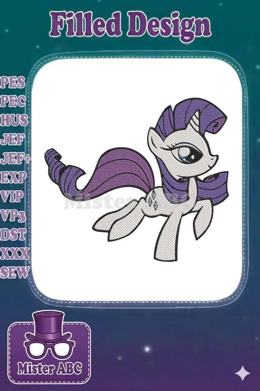 Rarity My Little Pony Unicorn Character Embroidery Designs