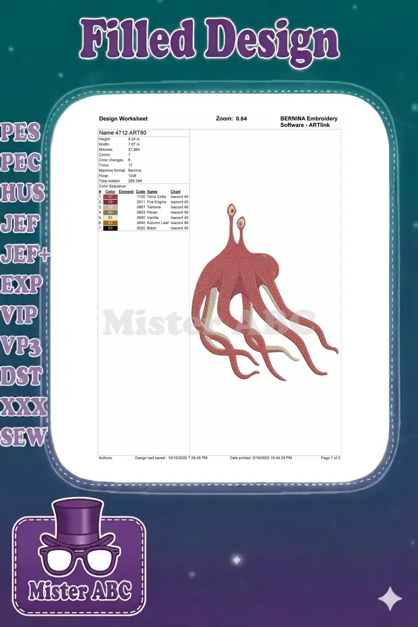 Red tentacled sea monster with stalk eyes embroidery designs - Instant Download Red tentacled sea monster with stalk eyes embroidery designs – Instant Download