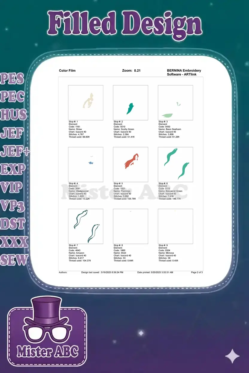 Red-haired Mermaid Ariel with Green Eels Underwater Embroidery Designs - Instant Download Red-haired Mermaid Ariel with Green Eels Underwater Embroidery Designs – Instant Download