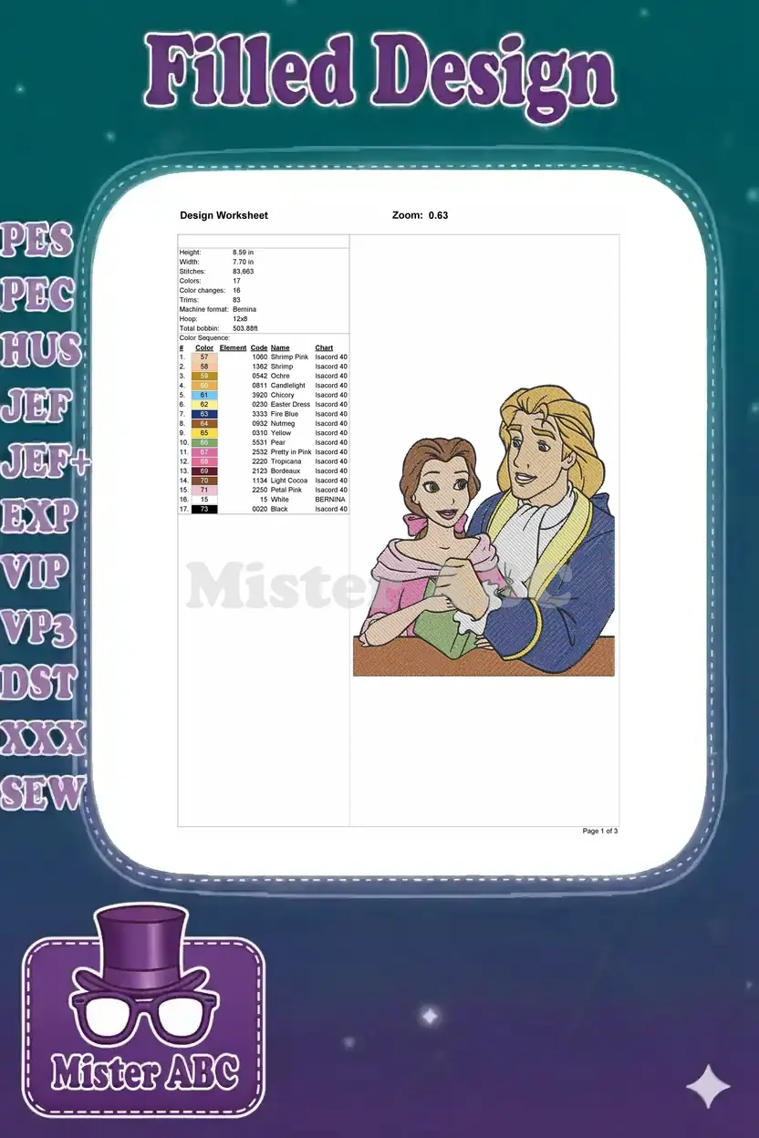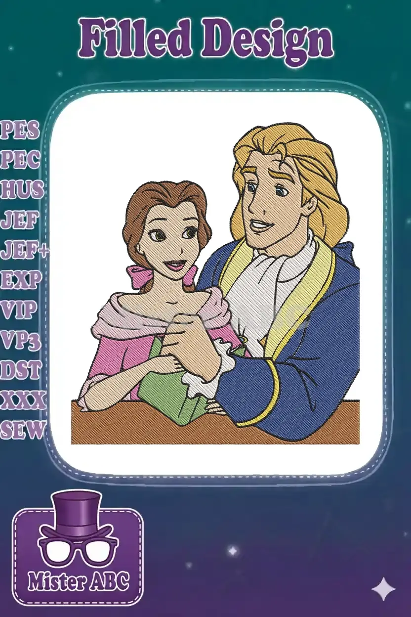 Romantic Beauty and the Beast Belle and Prince embroidery designs