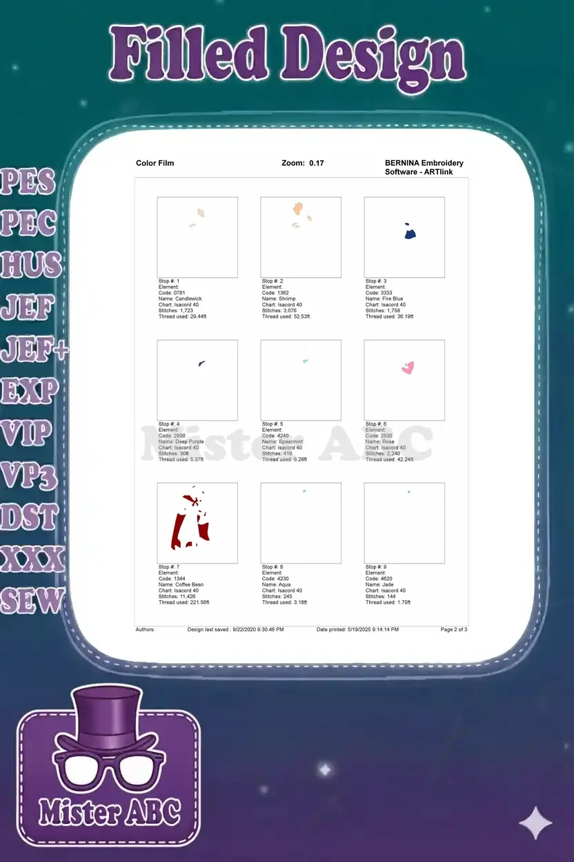 | Stitches | Colors | Thread Changes |