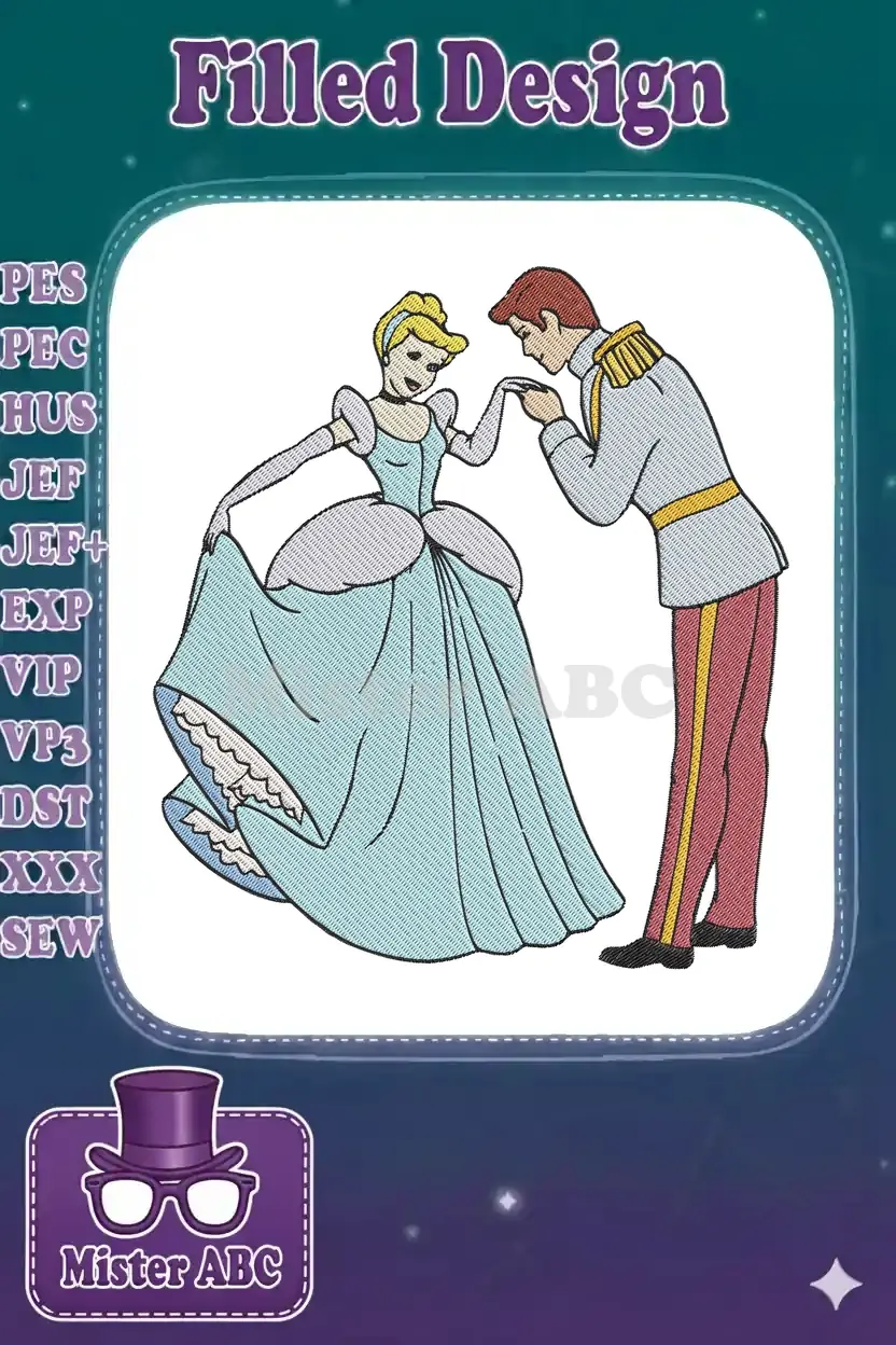 Romantic Princess and Prince Hand Kiss Embroidery Designs