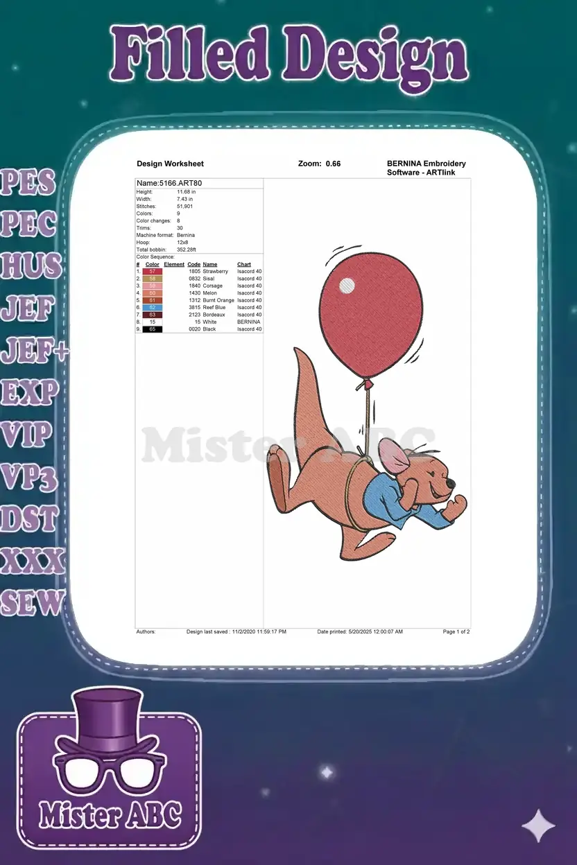 Roo floating with red balloon embroidery designs