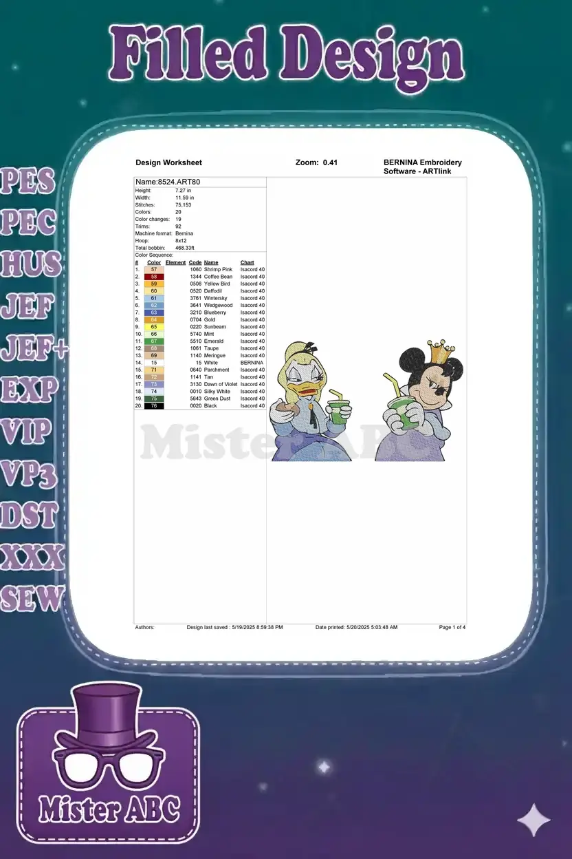 Royal Princess Daisy Duck Minnie Mouse drinks snack embroidery designs