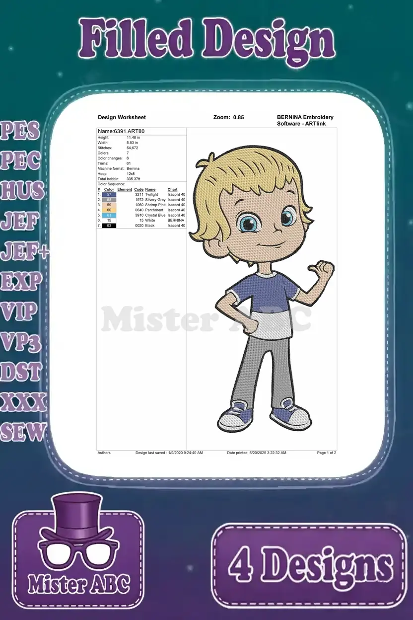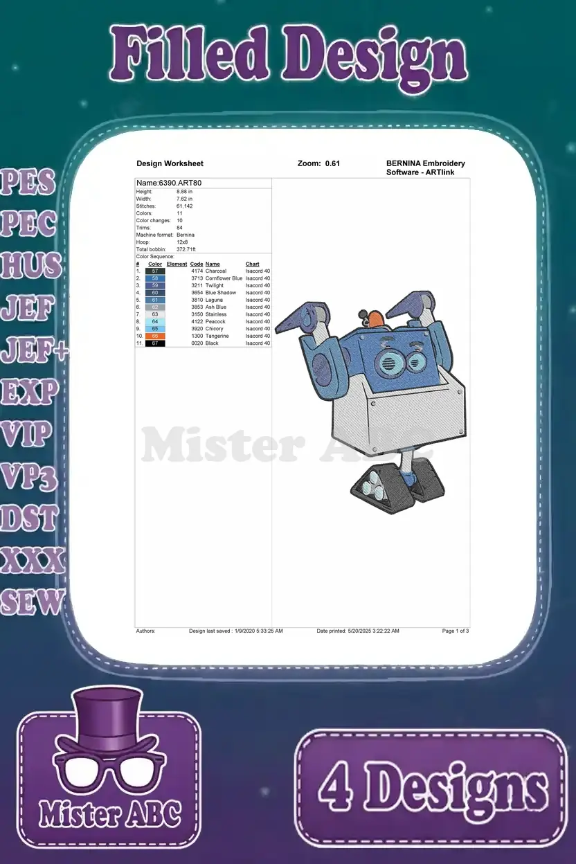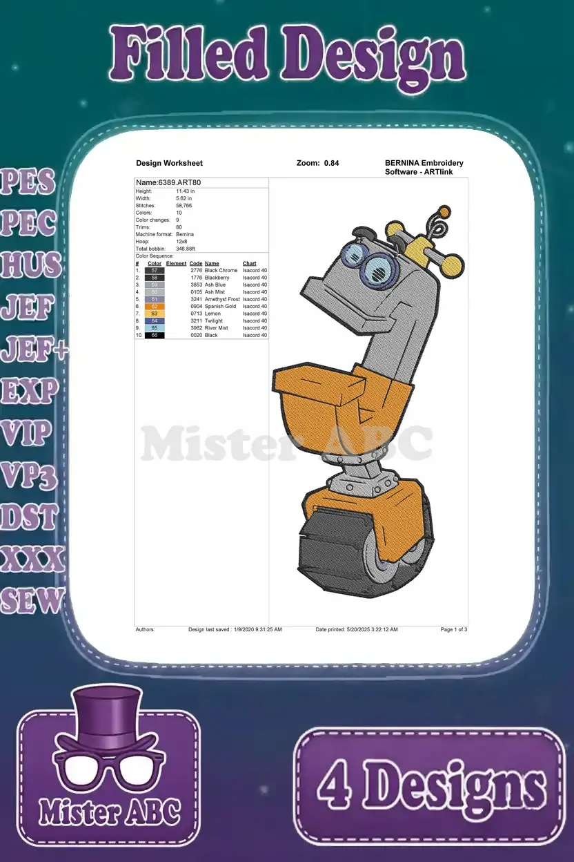 Rusty Rivets Inventor Rusty With Botasaur Robot Dinosaur And Bytes Robot Dog – Filled Embroidery Design