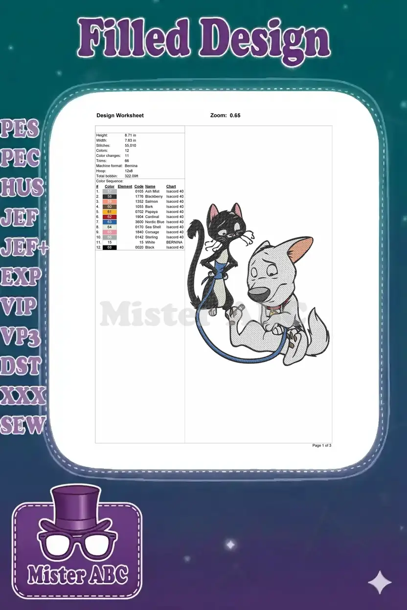 Sad Bolt Dog and Sassy Mittens Cat Cartoon Embroidery Designs