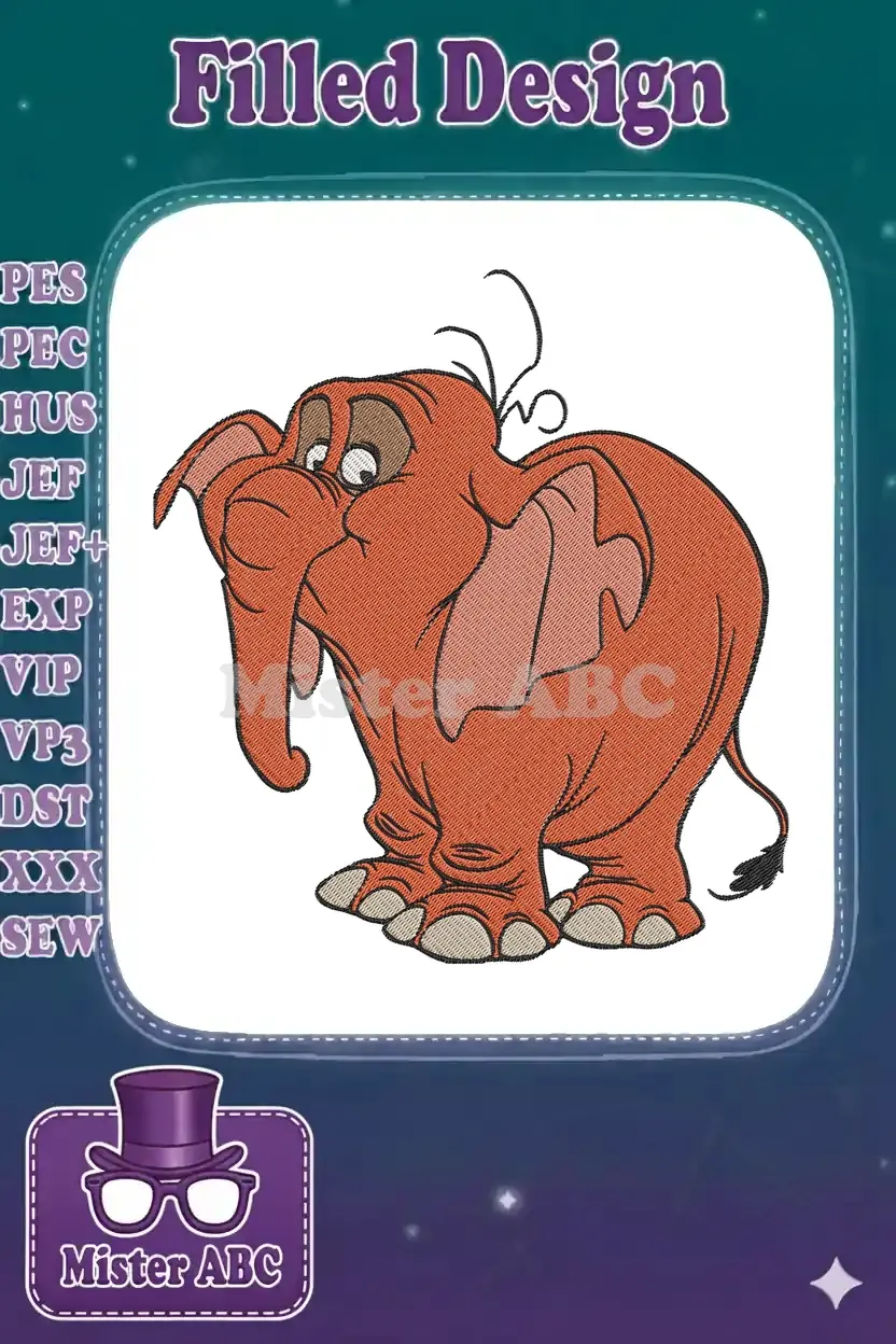 Sad Cartoon Elephant Embroidery Designs for Children’s Apparel