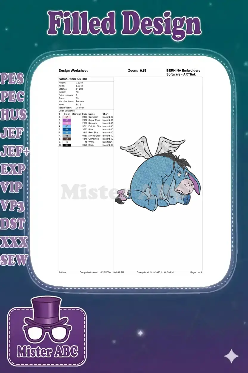 Sad Eeyore with Angel Wings Winnie Pooh embroidery designs