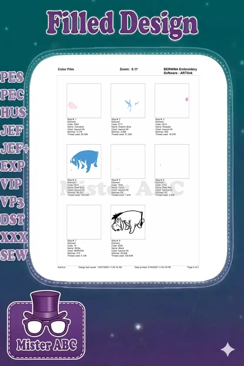 Bring a touch of classic Disney charm to your projects with this delightful Eeyore embroidery design. Perfect for fans!