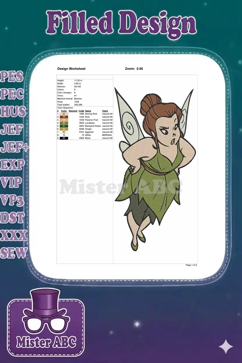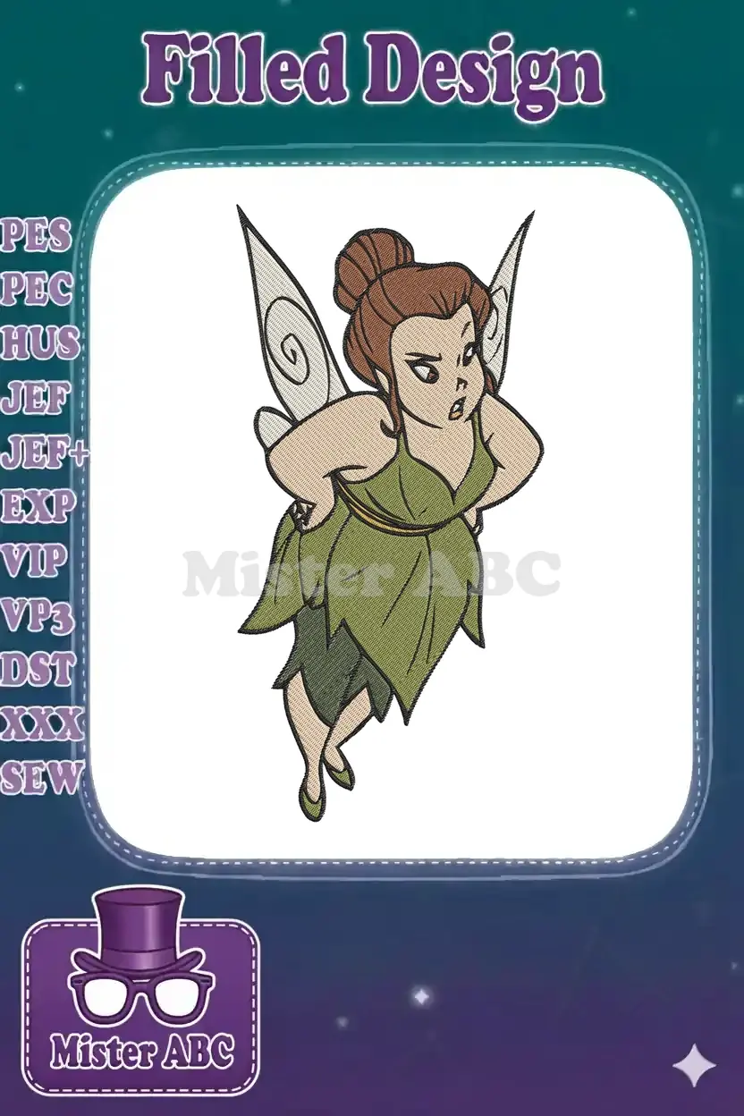 Sassy Chubby Fairy with Green Leaf Dress and Wings Embroidery Designs
