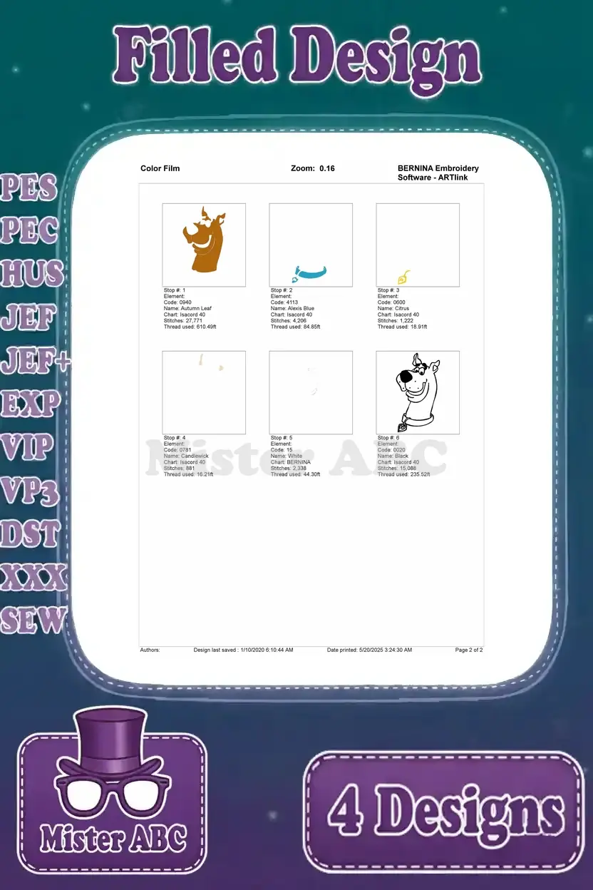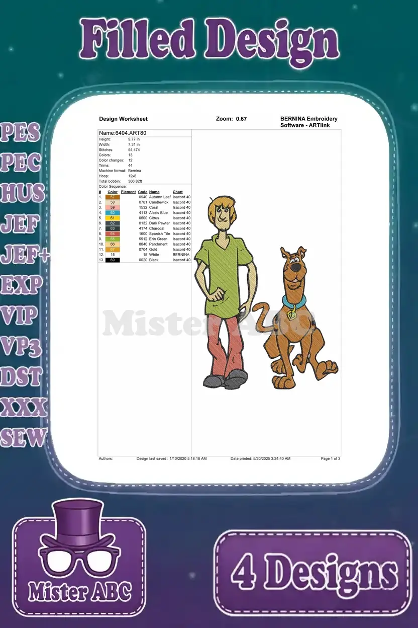 Scooby Doo Characters Scooby Doo Various Poses And With Shaggy Rogers Best Pals – Filled Embroidery Design