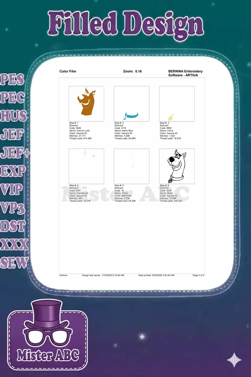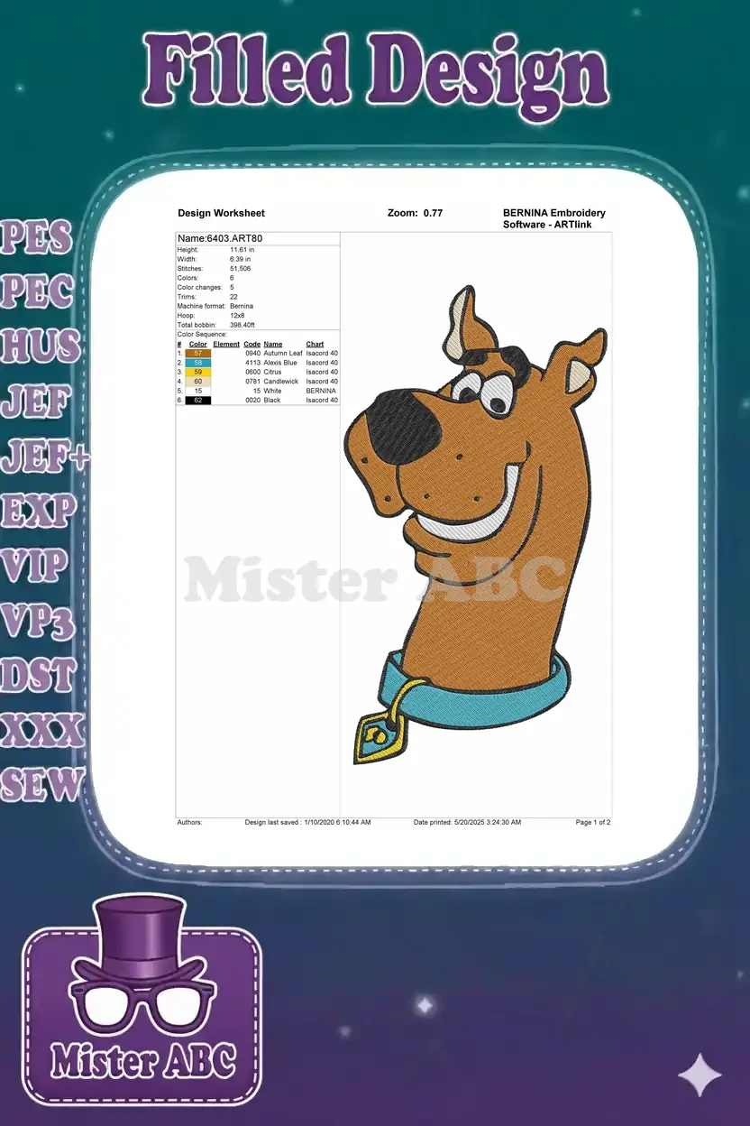 Scooby-Doo Smiling Cartoon Dog Head Embroidery Designs