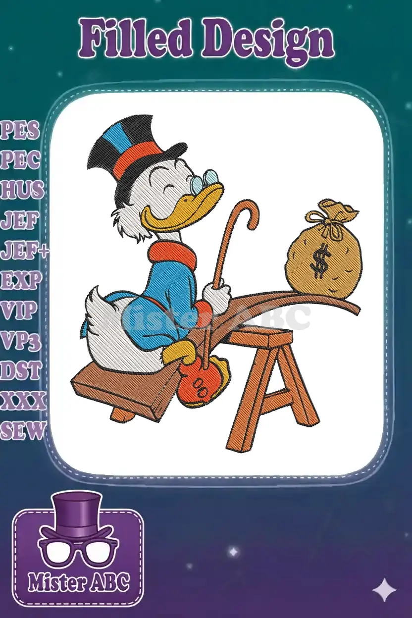 Scrooge McDuck Balancing Money Bag on Seesaw Embroidery Designs