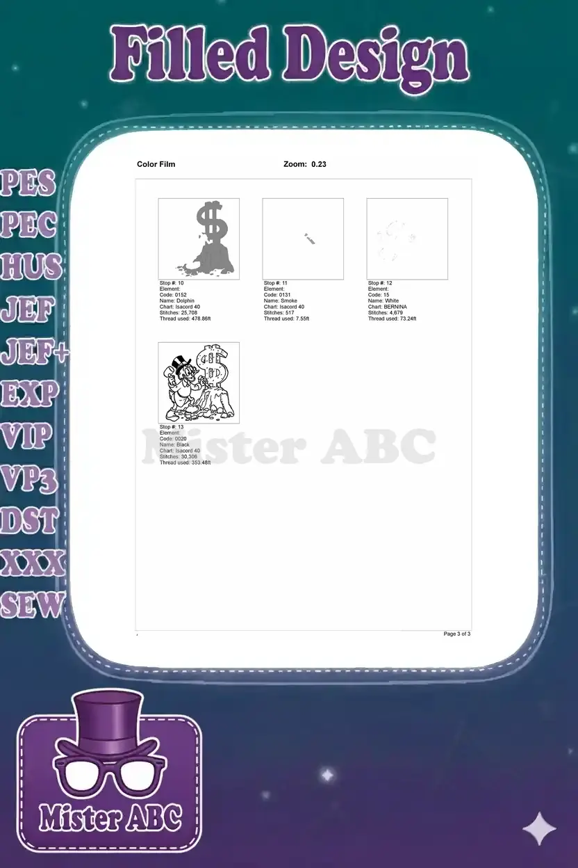 Scrooge McDuck Carving Dollar Sign Stone Money Embroidery Designs