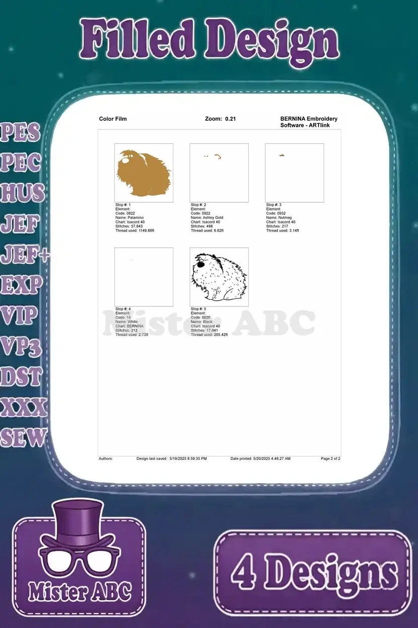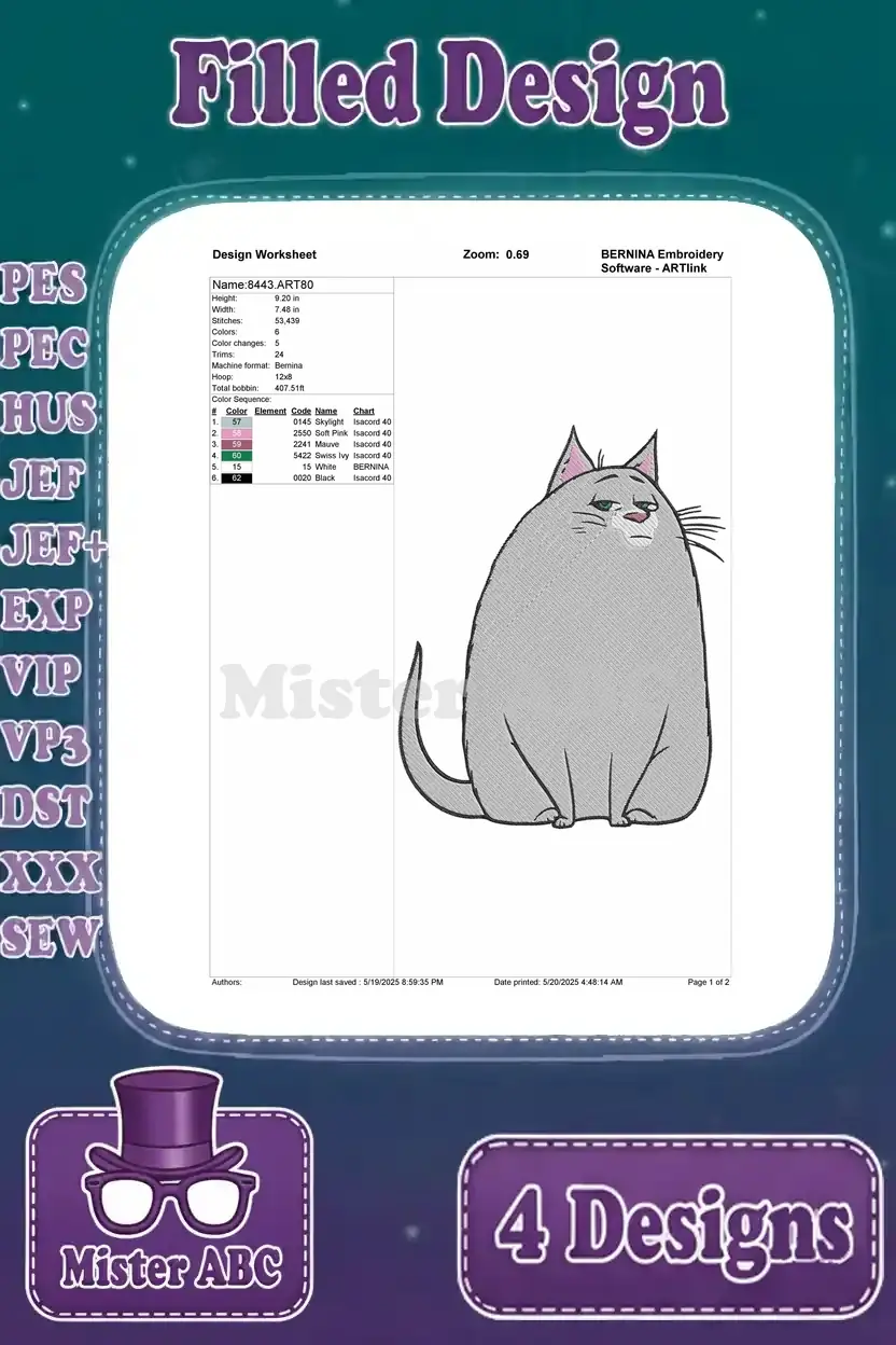 Get creative with this delightful embroidery bundle featuring 4 filled designs of beloved pet characters. Perfect for fans!