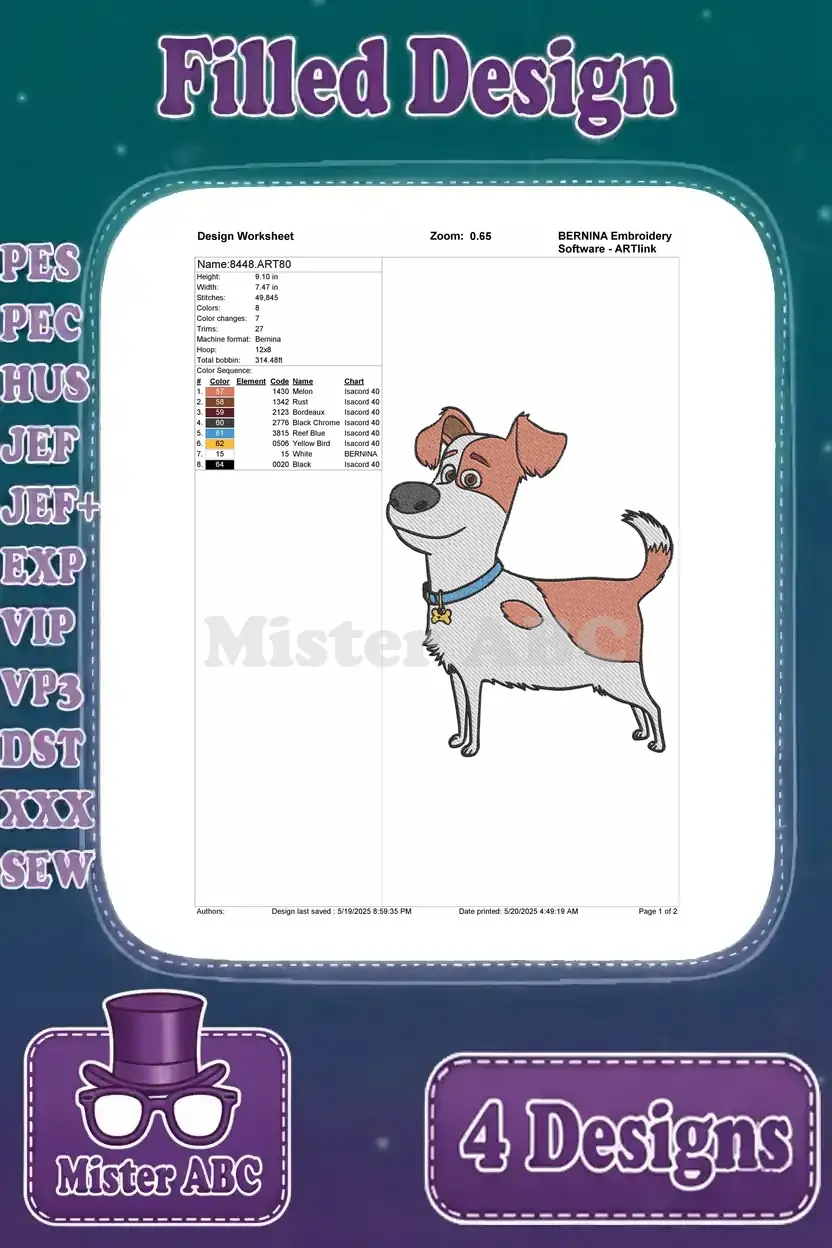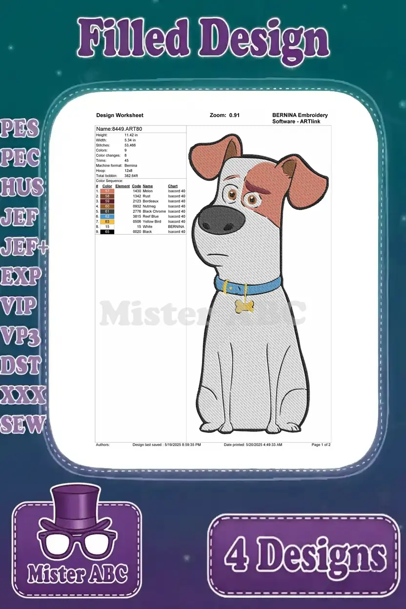 Secret Life Of Pets Gidget Pomeranian And Max Jack Russell Terrier Dog Poses – Filled Embroidery Design